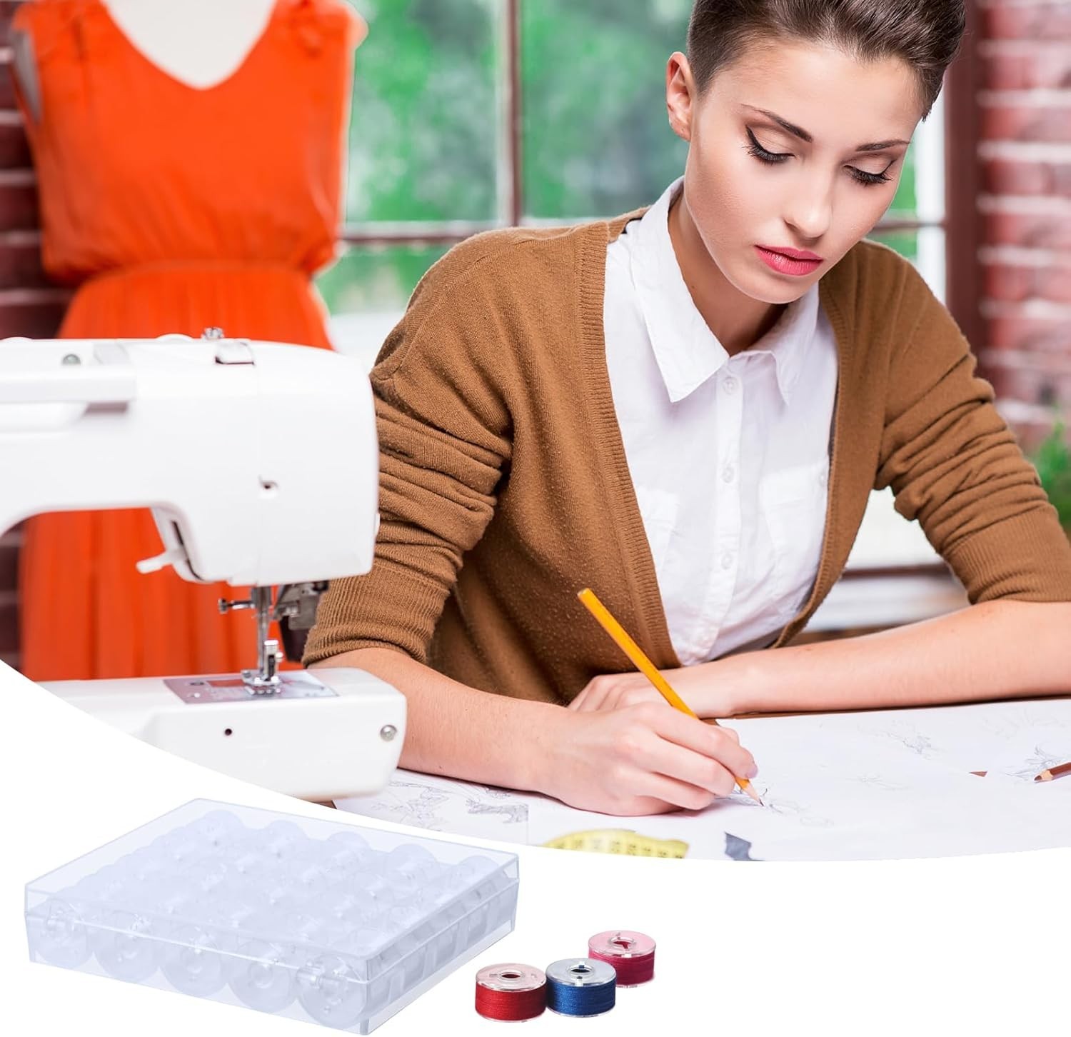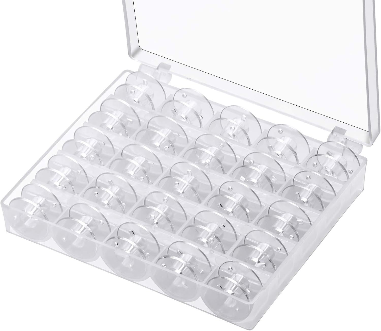 25 Sewing Machine Bobbins Class 15 with Clear Organizer Box for Storage