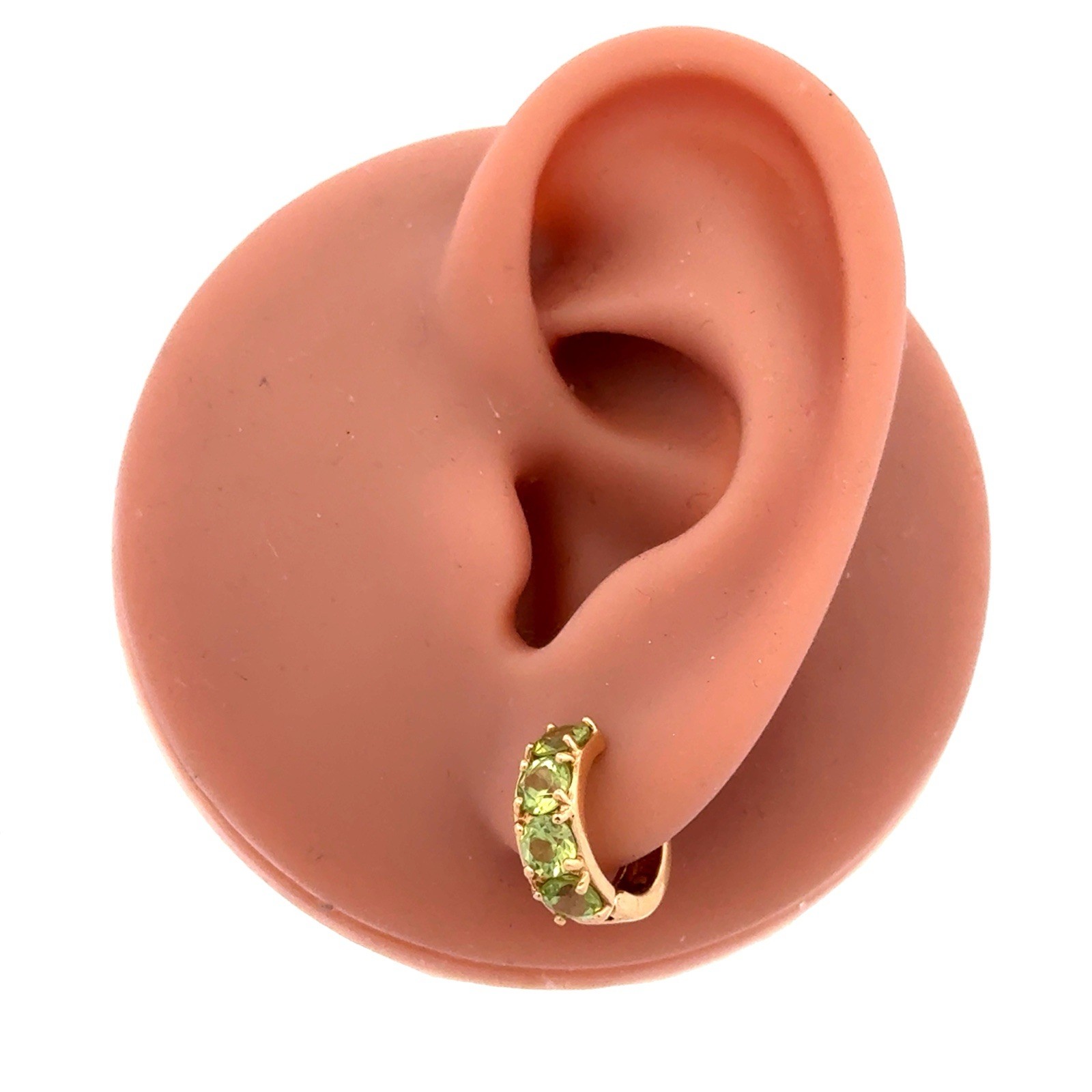 как выглядит Designer 14k Yellow Gold Peridot August Birthstone Huggie Hoop Hinged Earrings фото