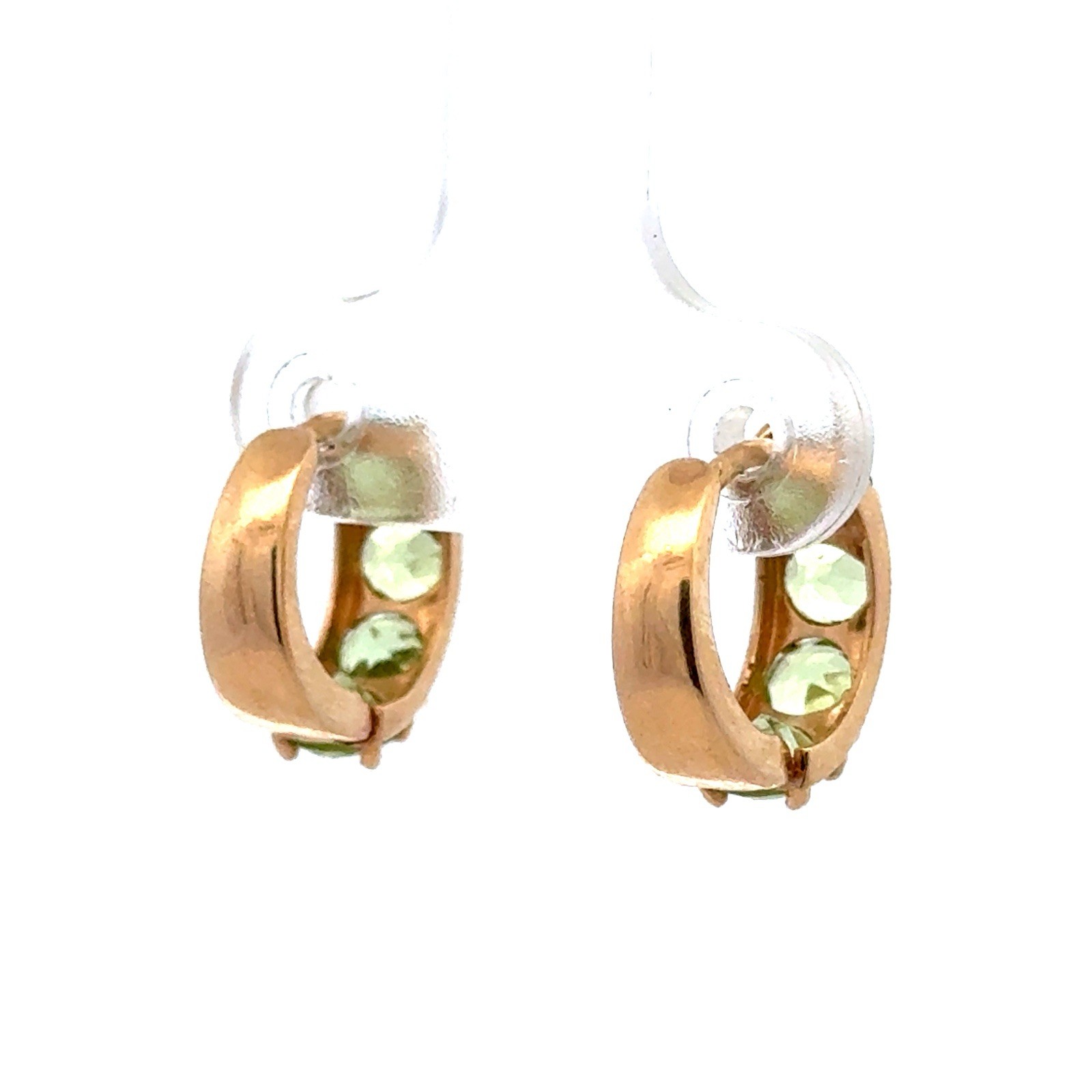 Designer 14k Yellow Gold Peridot August Birthstone Huggie Hoop Hinged Earrings