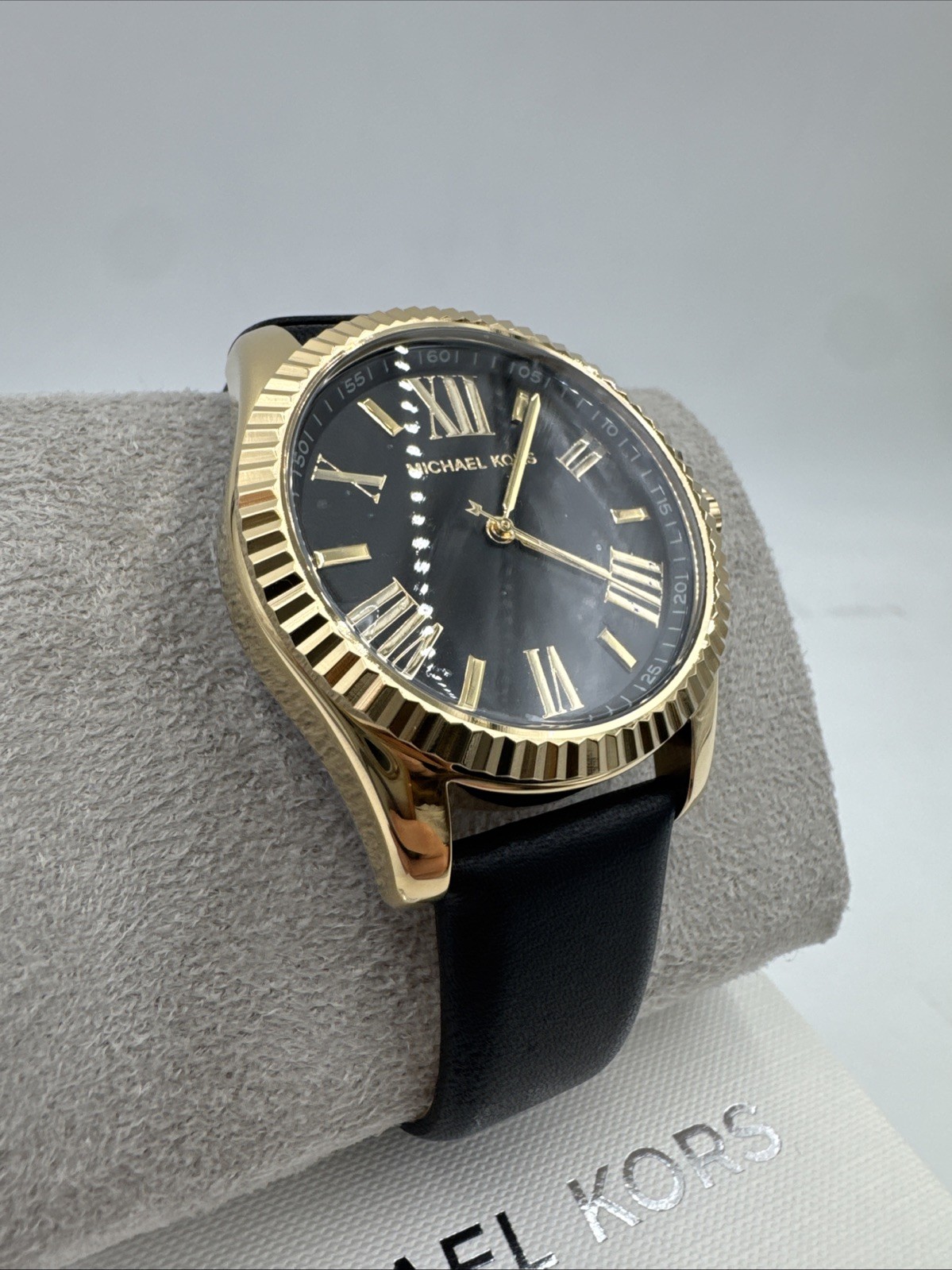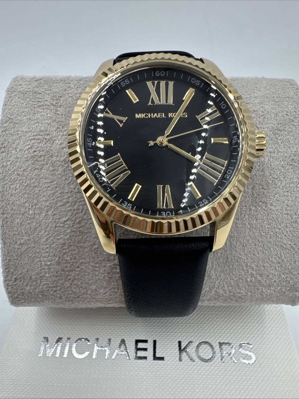 как выглядит Michael Kors Womens Watch MK4748 Lexington Quartz Gold Black Leather Band 38mm фото