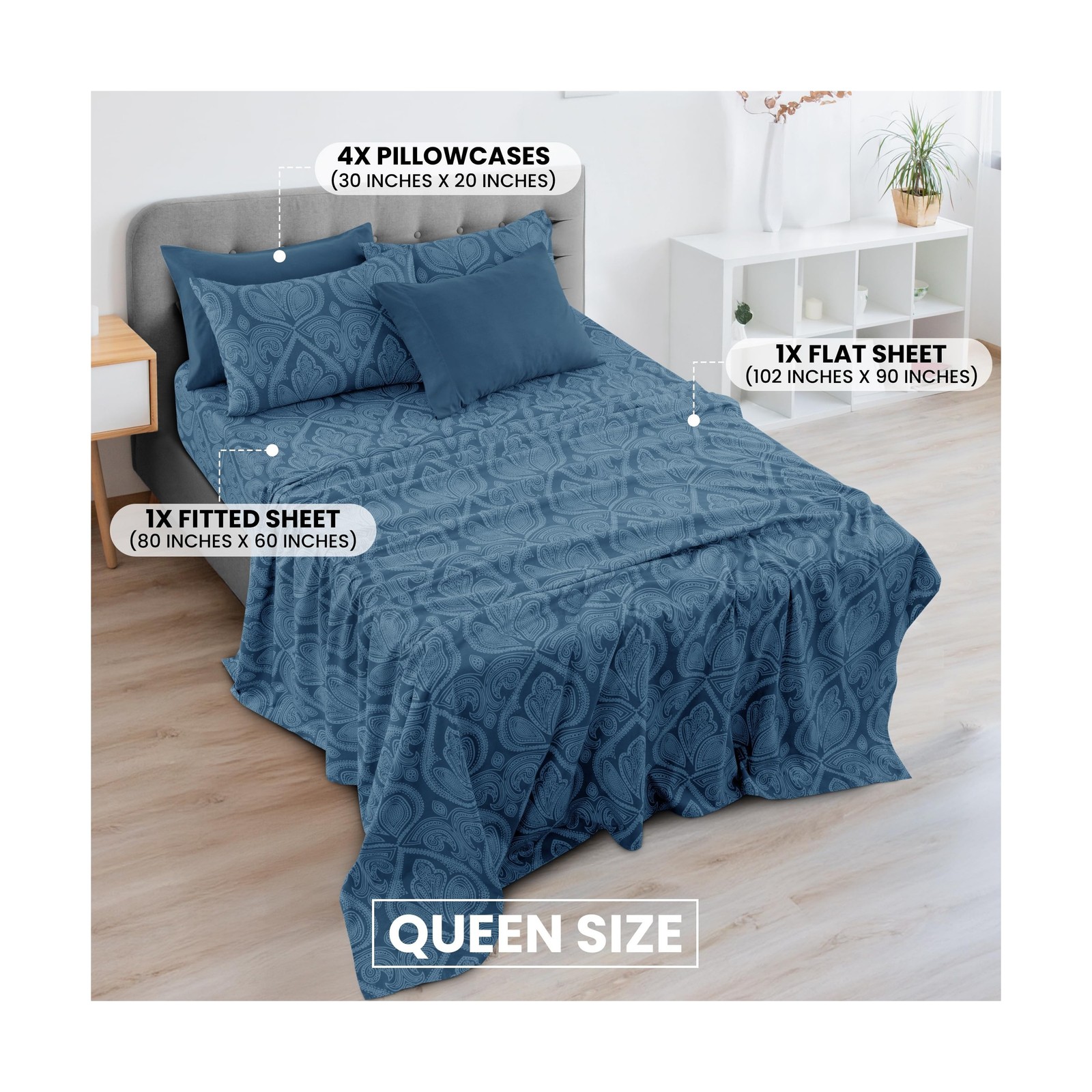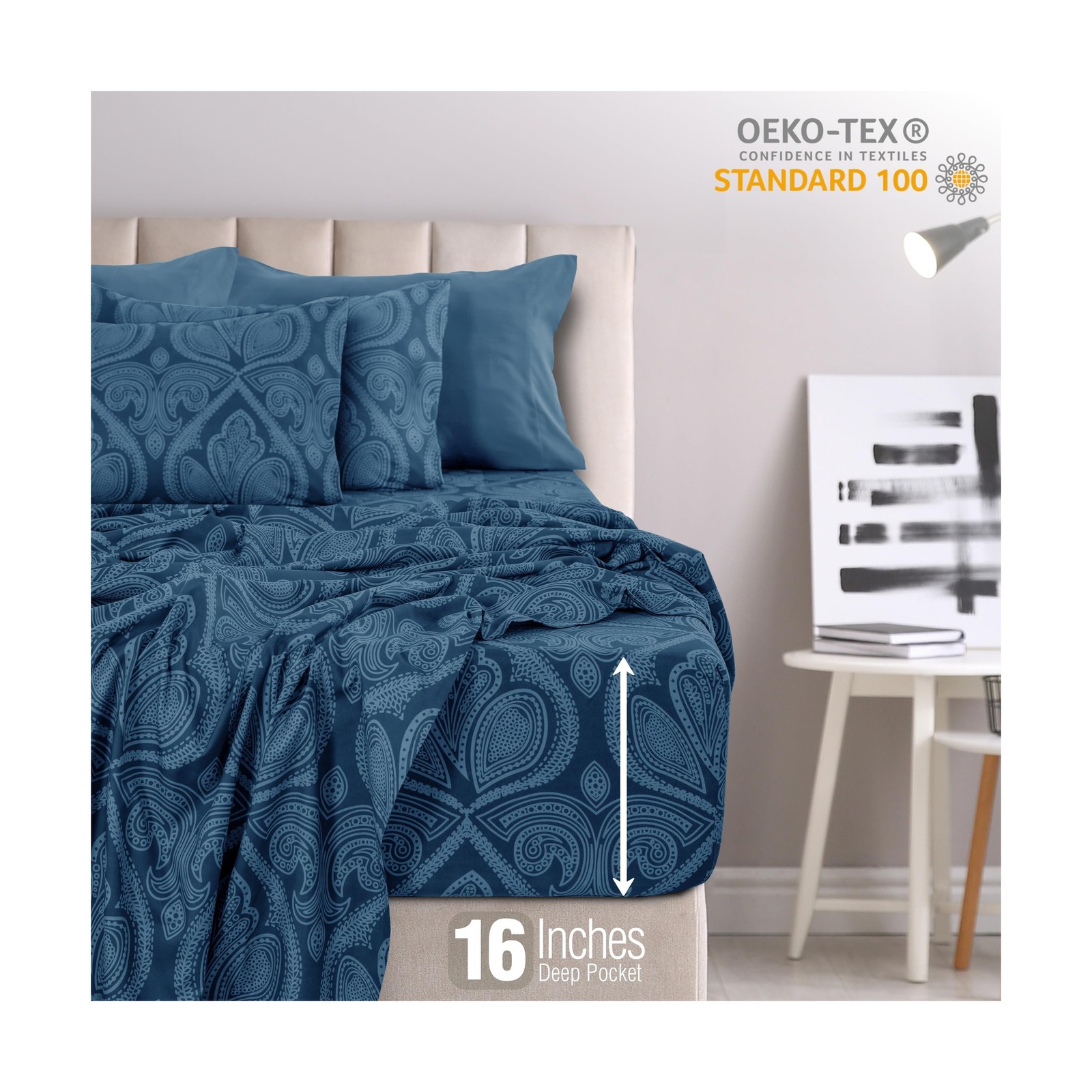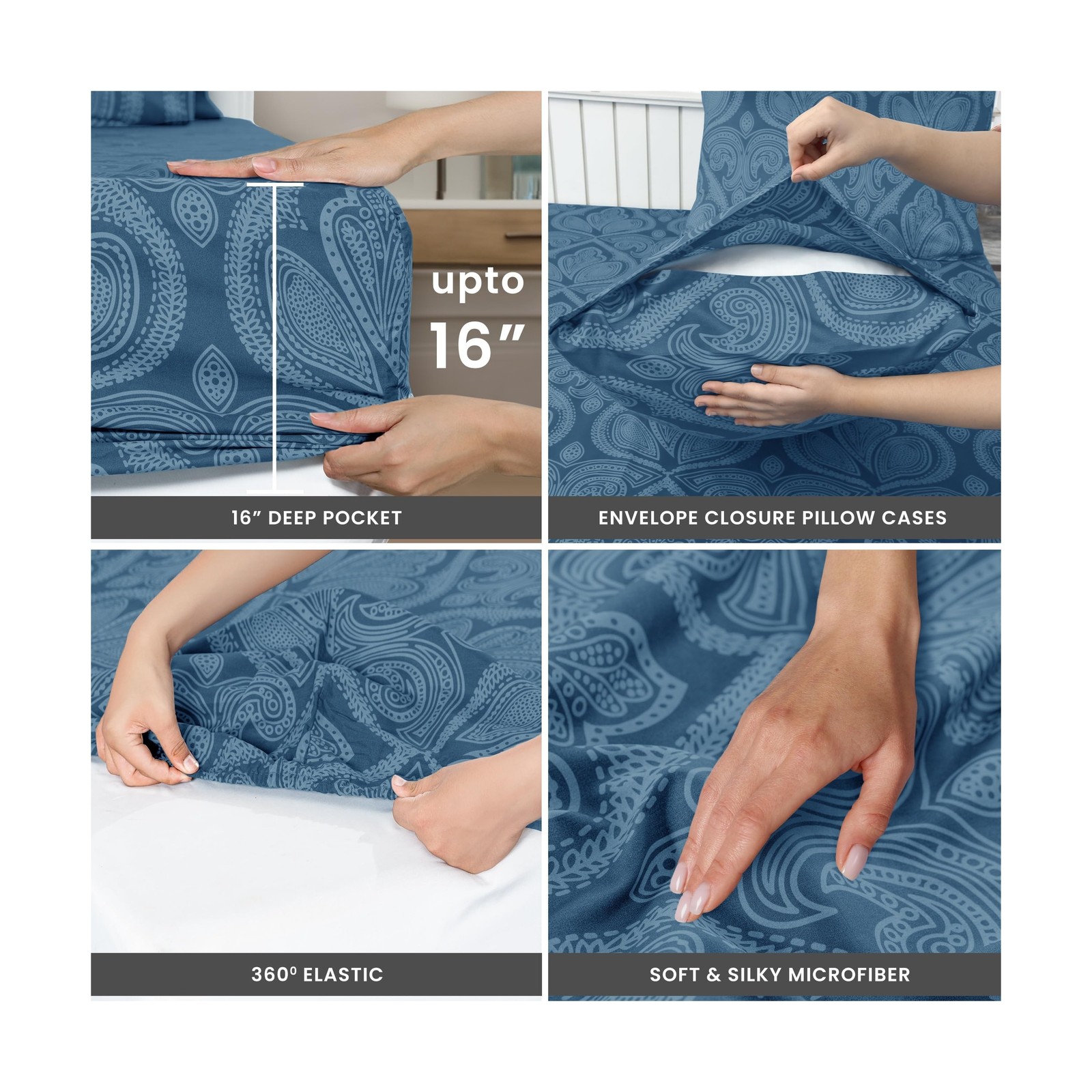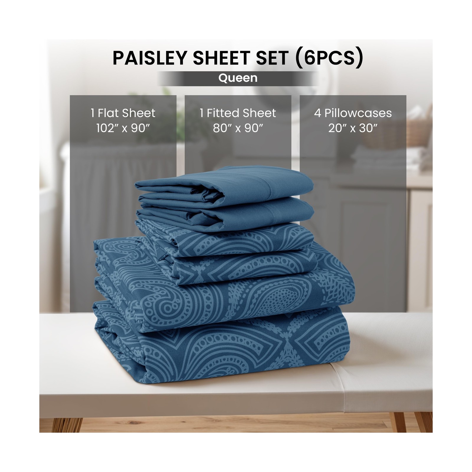 LUX D 233;cor Paisley Queen Sheet Set 8211; 6 Piece Ultra-Soft Microfiber B..