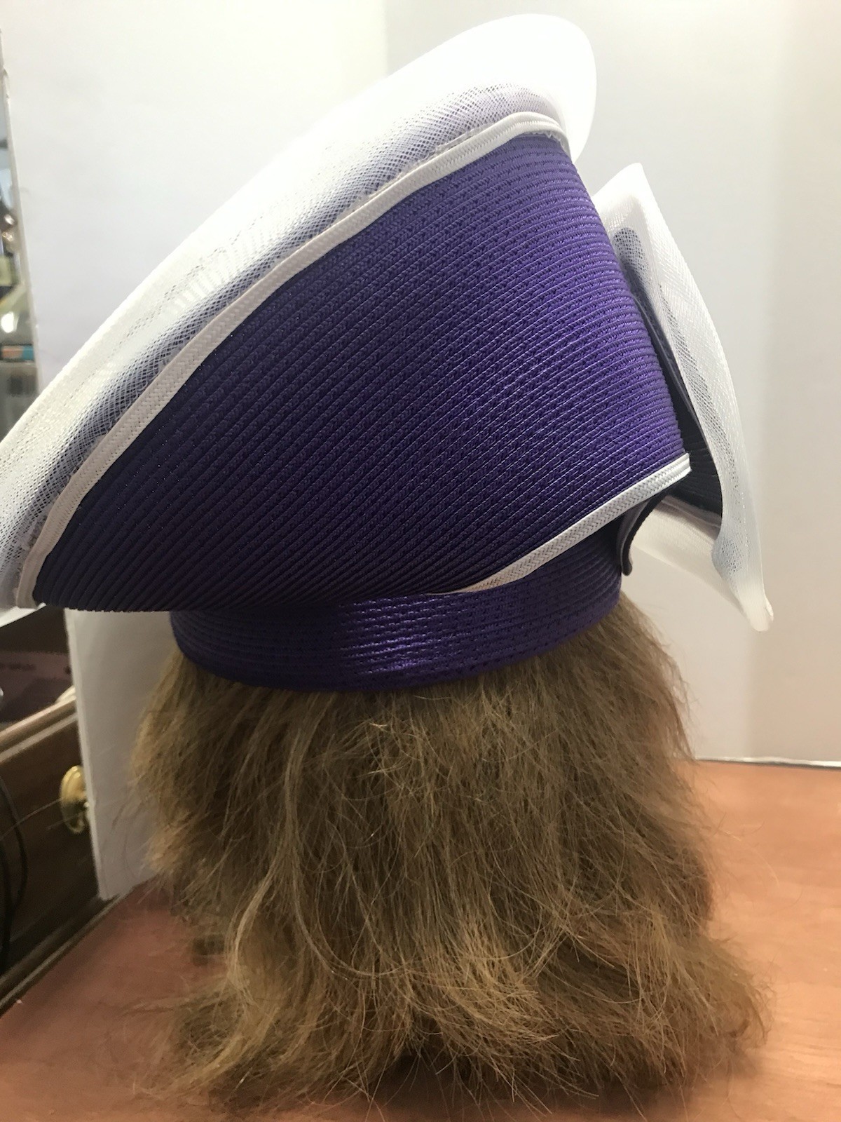 Vintage Fancy Purple White Fascinator Church Kentucky Derby Brimmed Bow Hat
