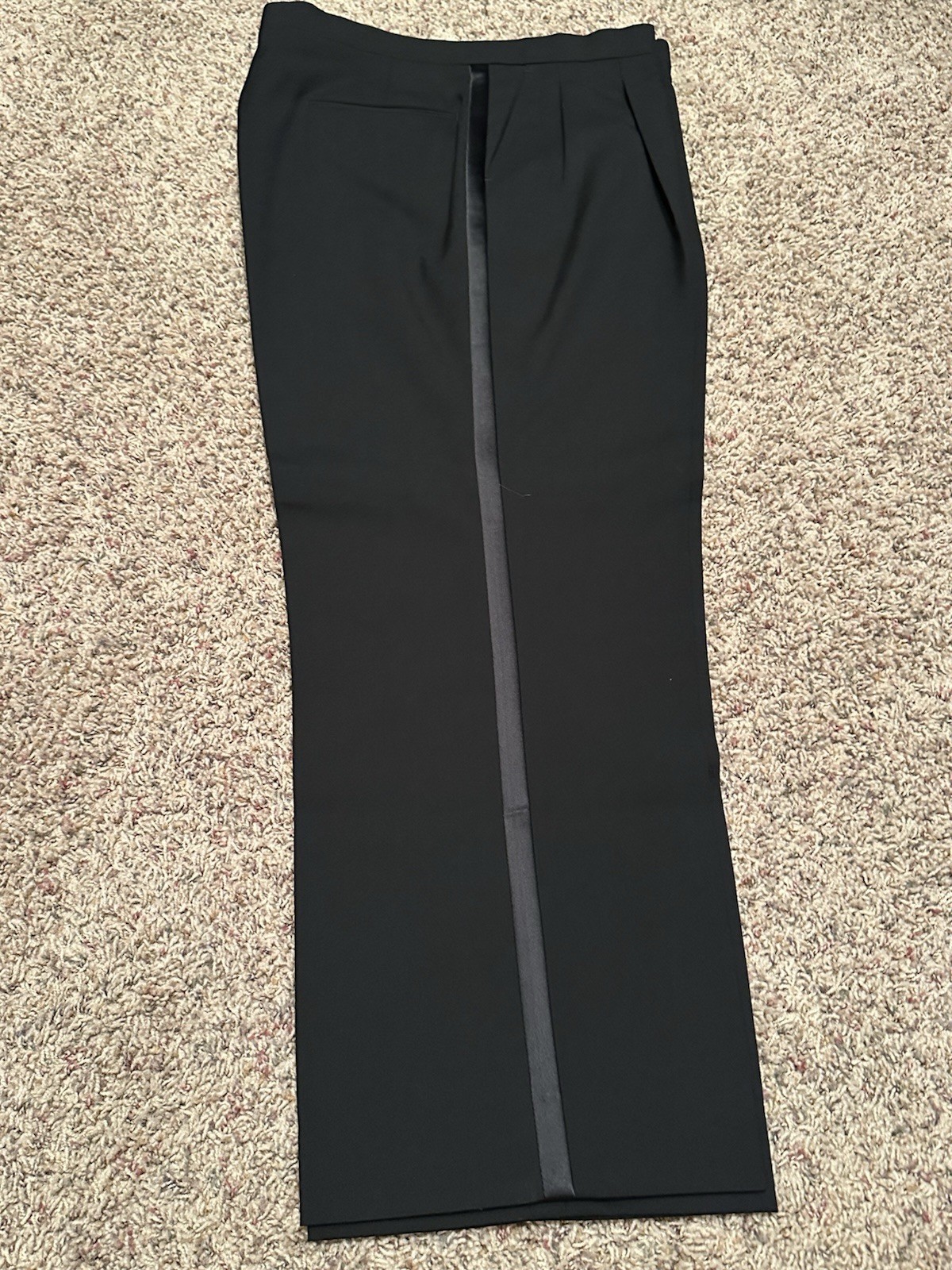 как выглядит Mens Black Unbranded Tuxedo Pants 100 Wool w/Satin Stripe Pleated фото
