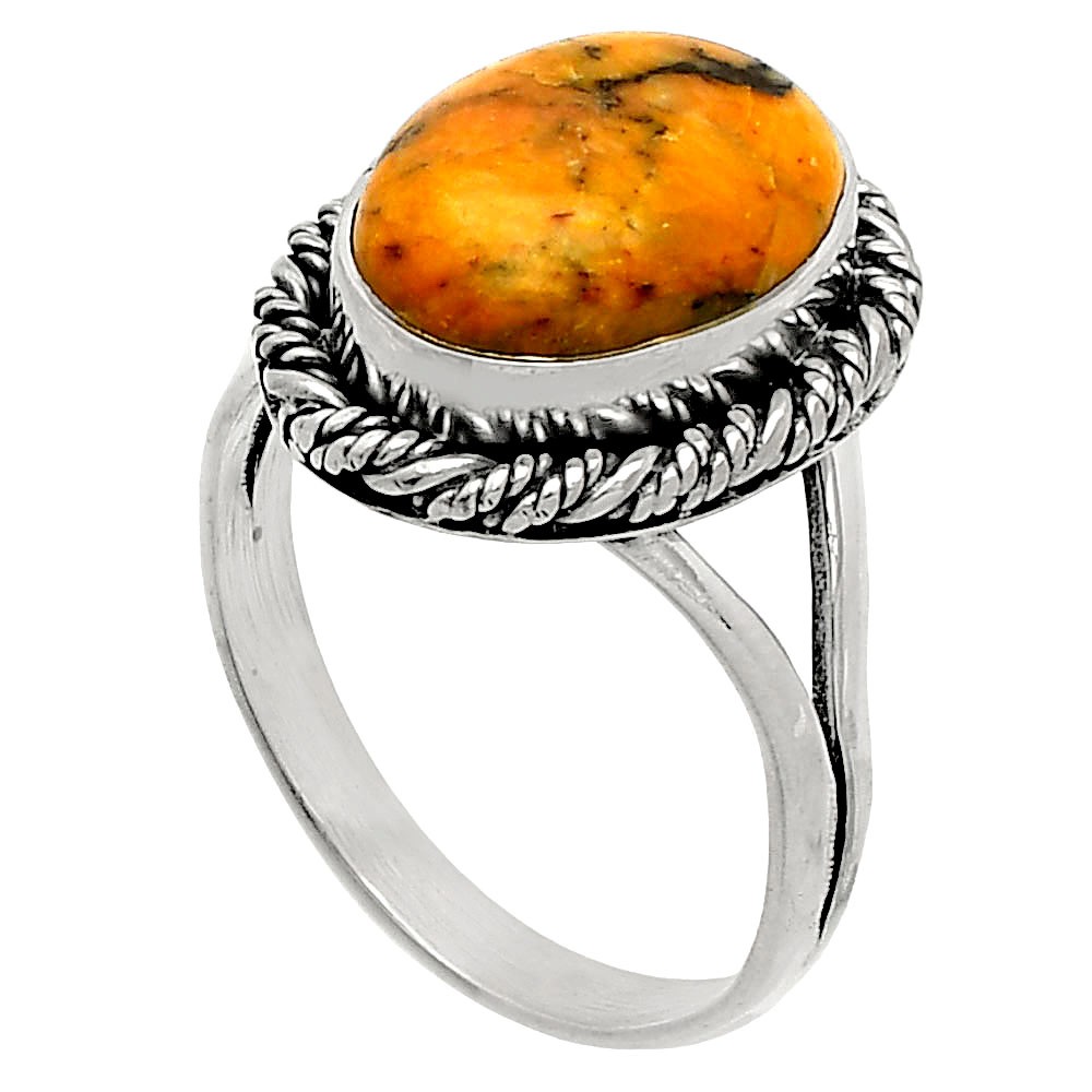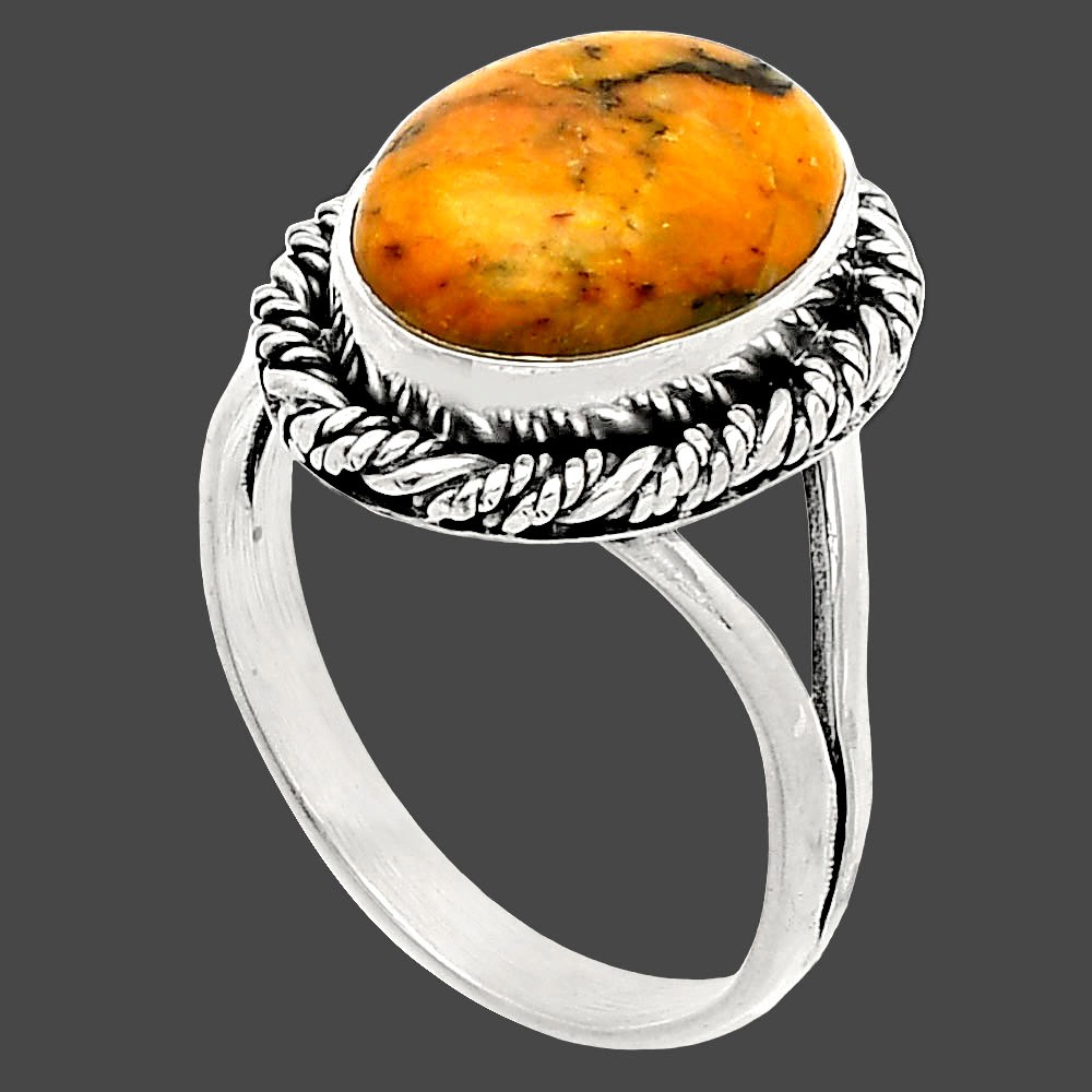 как выглядит Natural Honey Dendritic Opal 925 Sterling Silver Ring s.9 Jewelry R-1014 фото