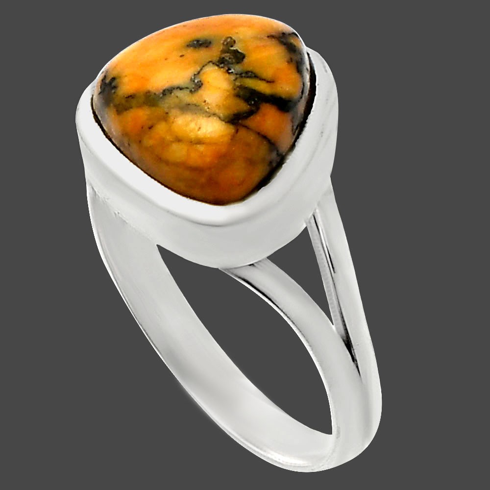 Natural Honey Dendritic Opal 925 Sterling Silver Ring s.9 Jewelry R-1005