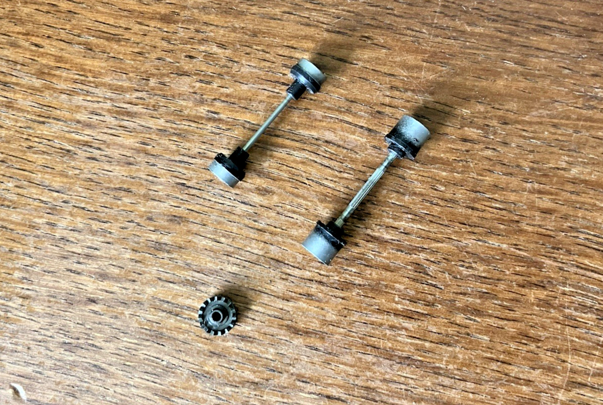 как выглядит NMINT AFX NonMT Axles w/5 Spoke Wheels w/2nd Gen Thicker Front Axles, Crown Gear фото