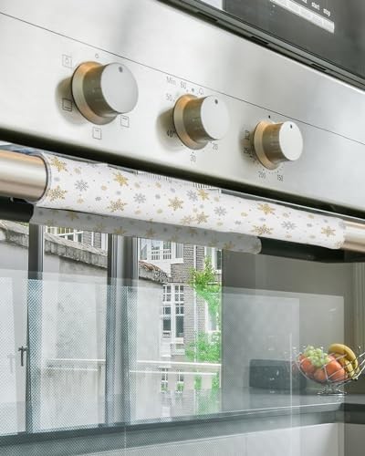Christmas Refrigerator Door Handle Cover Grey Gold Snowlfake 2 PCS White