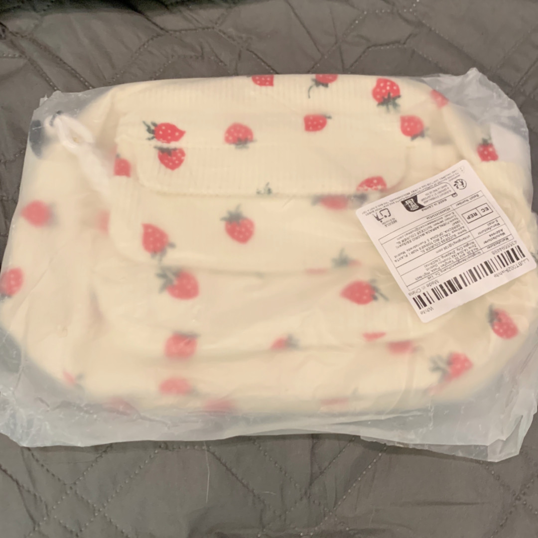 как выглядит Cream Corduroy Strawberry Print Shoulder Hand Bag Purse Crossbody New фото