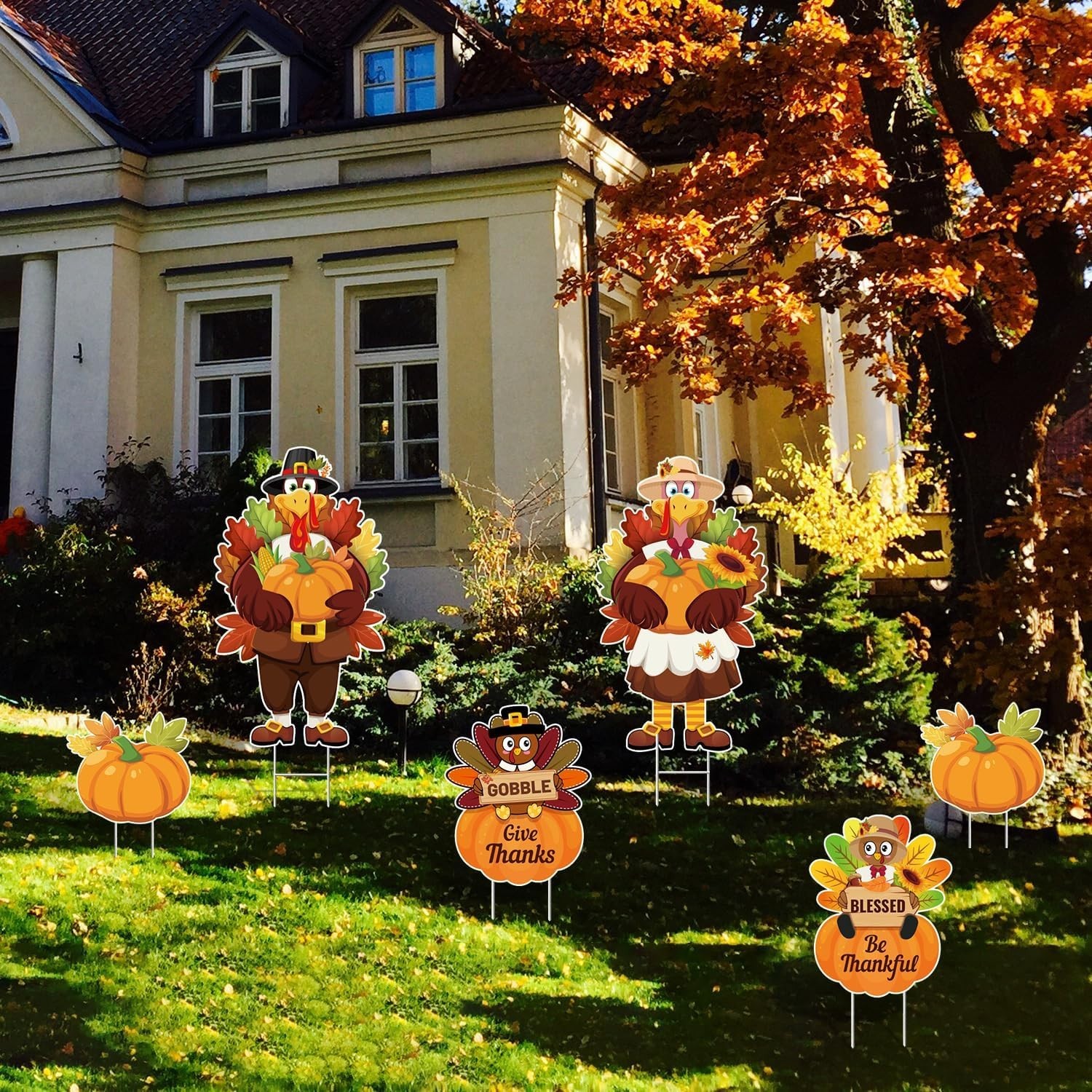 Thanksgiving Yard Decorations Outdoor, 6 Pcs Turkey Yard Signs for Thanksgiving