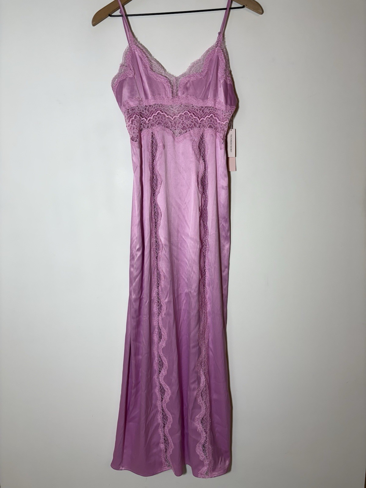 NWT Victoria's Secret Pink Satin LaceTrim Slip Dress Lingerie Maxi Nightgown XS