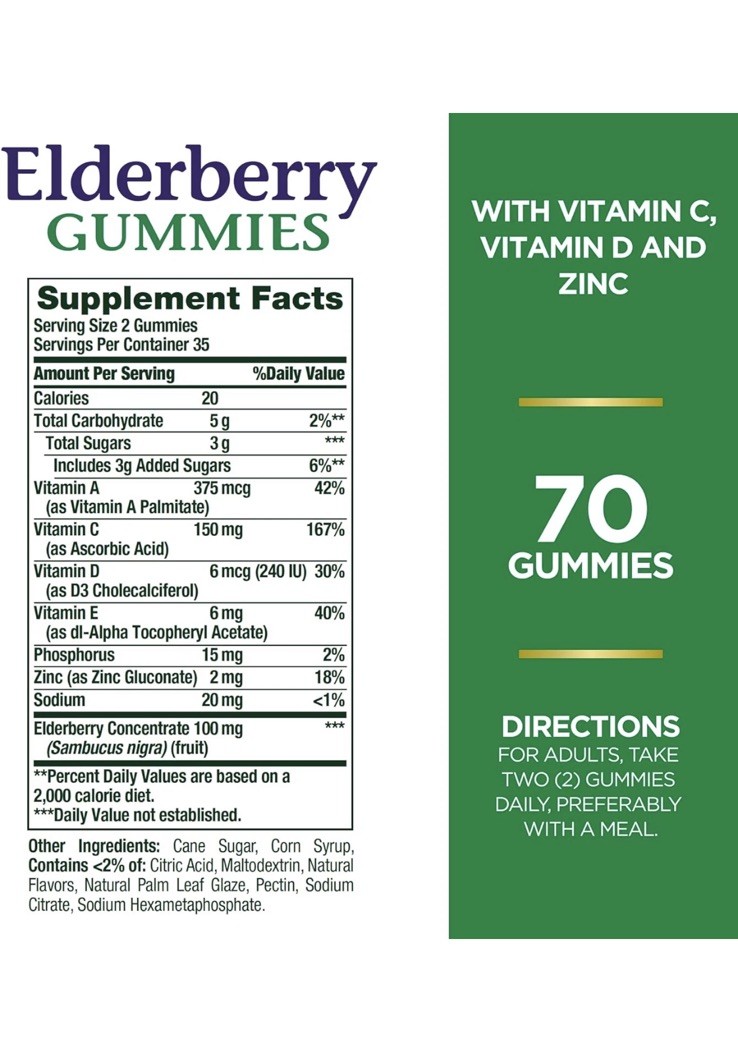 Nature's Bounty Elderberry Gummies Dietary Supplement Immune Health 70 count e