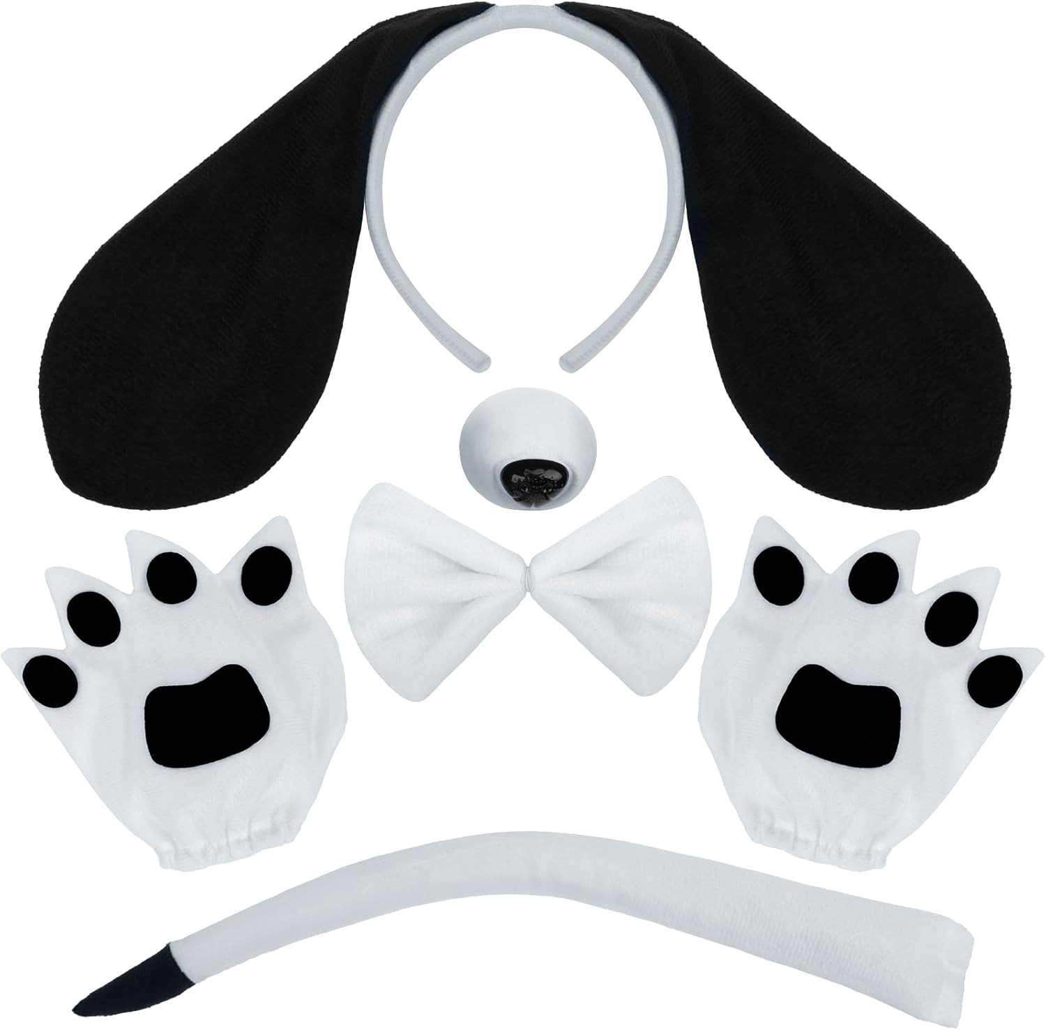 5 Pieces Puppy Dog Costume Set Dog Ears Headband Nose Tail Bow Tie Paw Gloves An