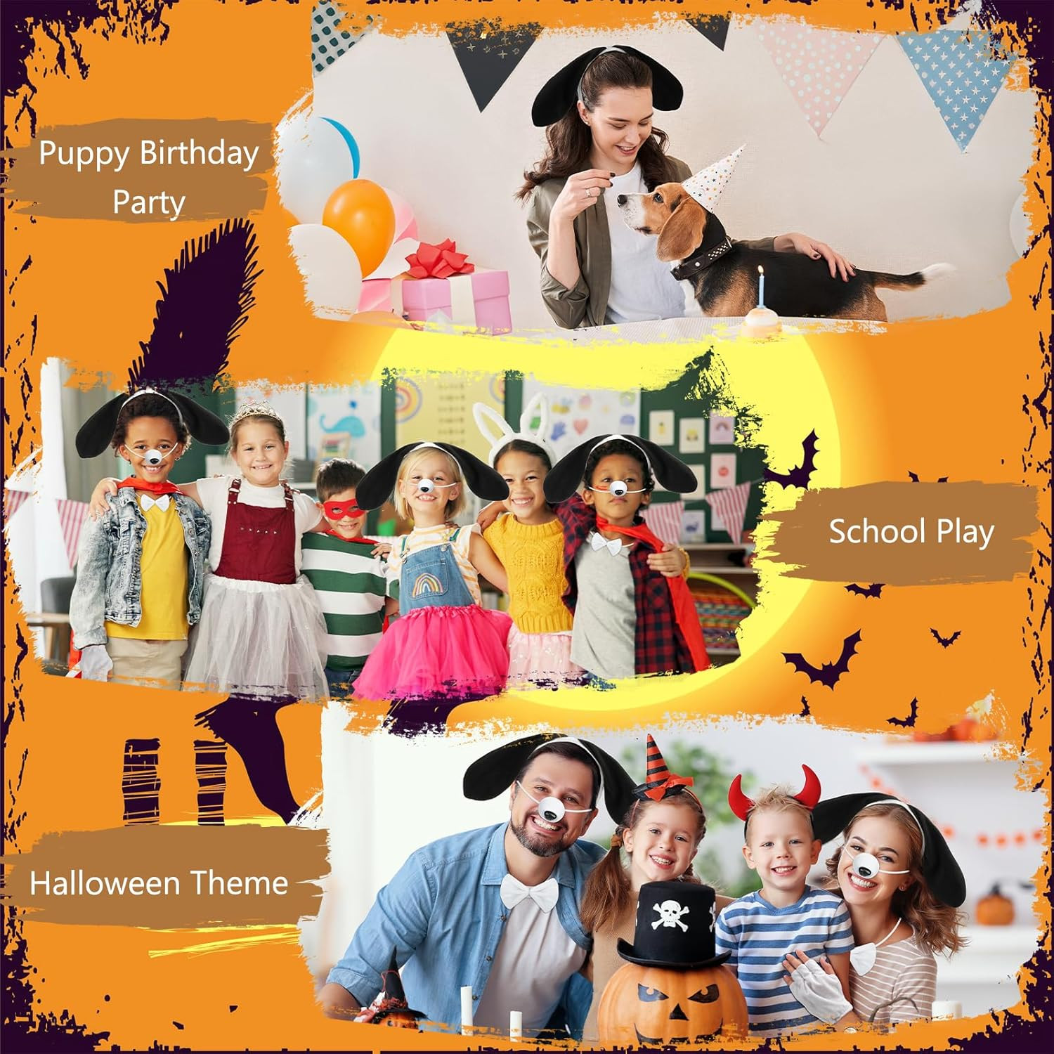 как выглядит 5 Pieces Puppy Dog Costume Set Dog Ears Headband Nose Tail Bow Tie Paw Gloves An фото