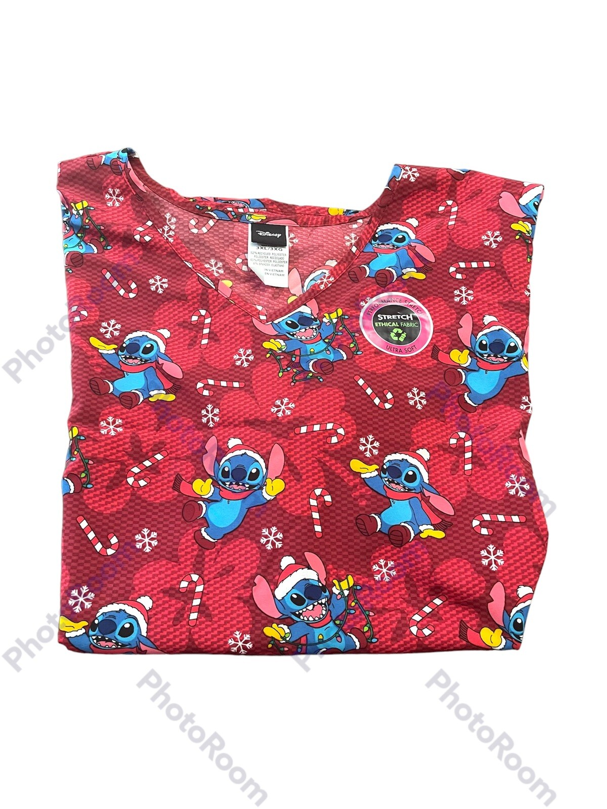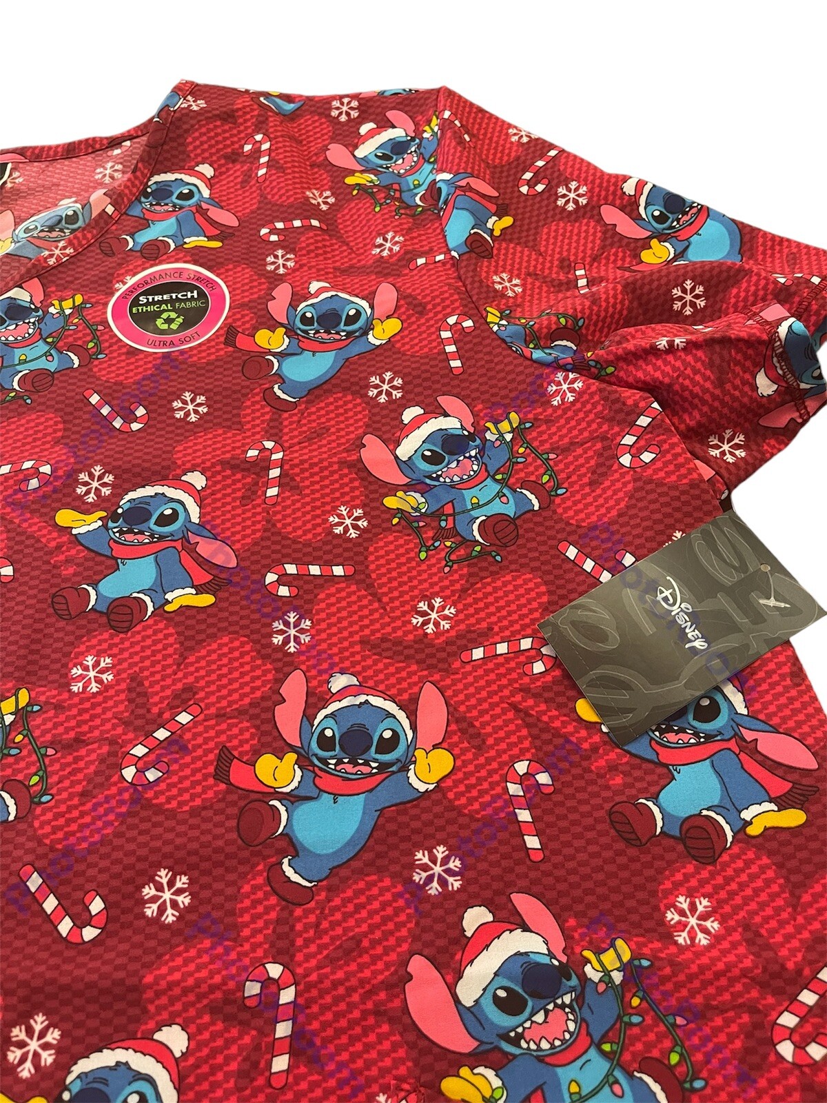 как выглядит Disney Womens Red Winter / Christmas Candy Cane STITCH Scrub Top NWT Size 3XL фото