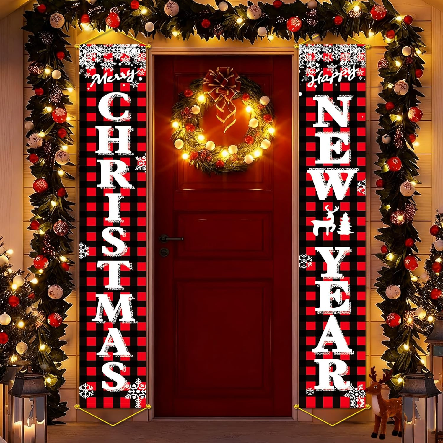 Christmas Porch Door Banners 71x12 Inch Merry Christmas Happy New Year Decor