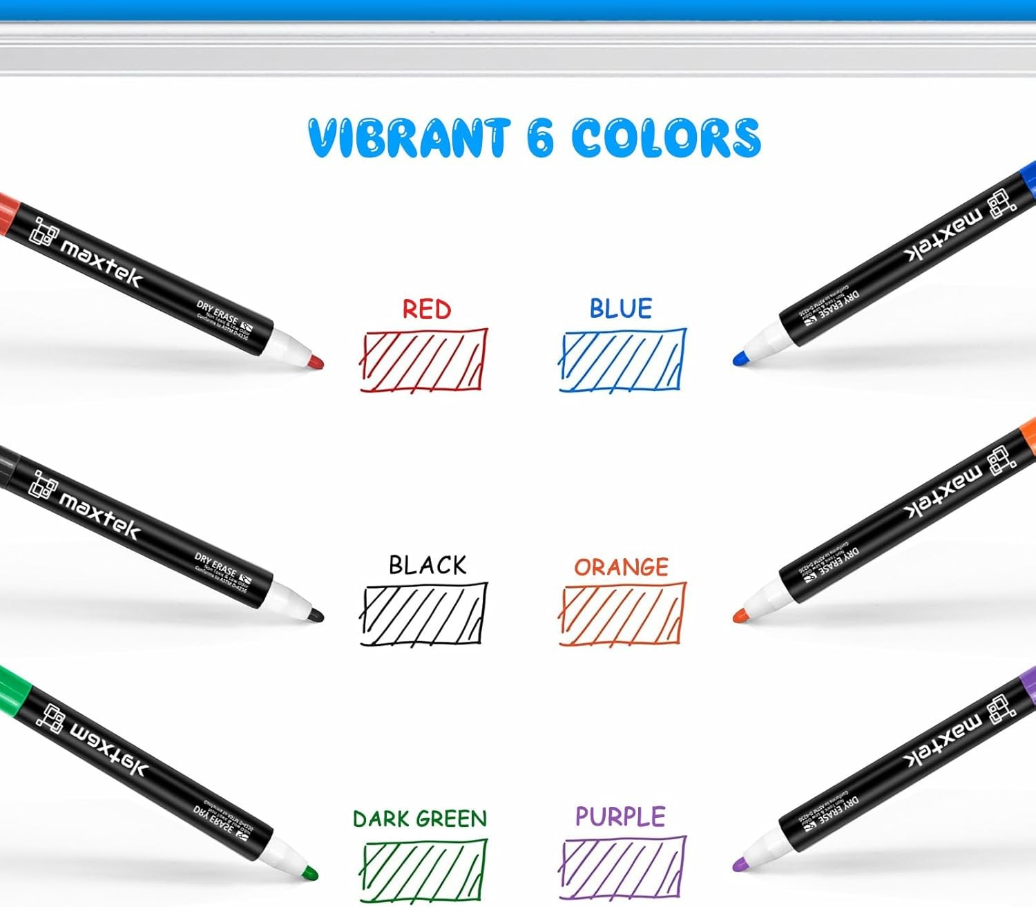 6 Magnetic Whiteboard Markers with Erasers Low Odor, Fine Tip, Vibrant Colors