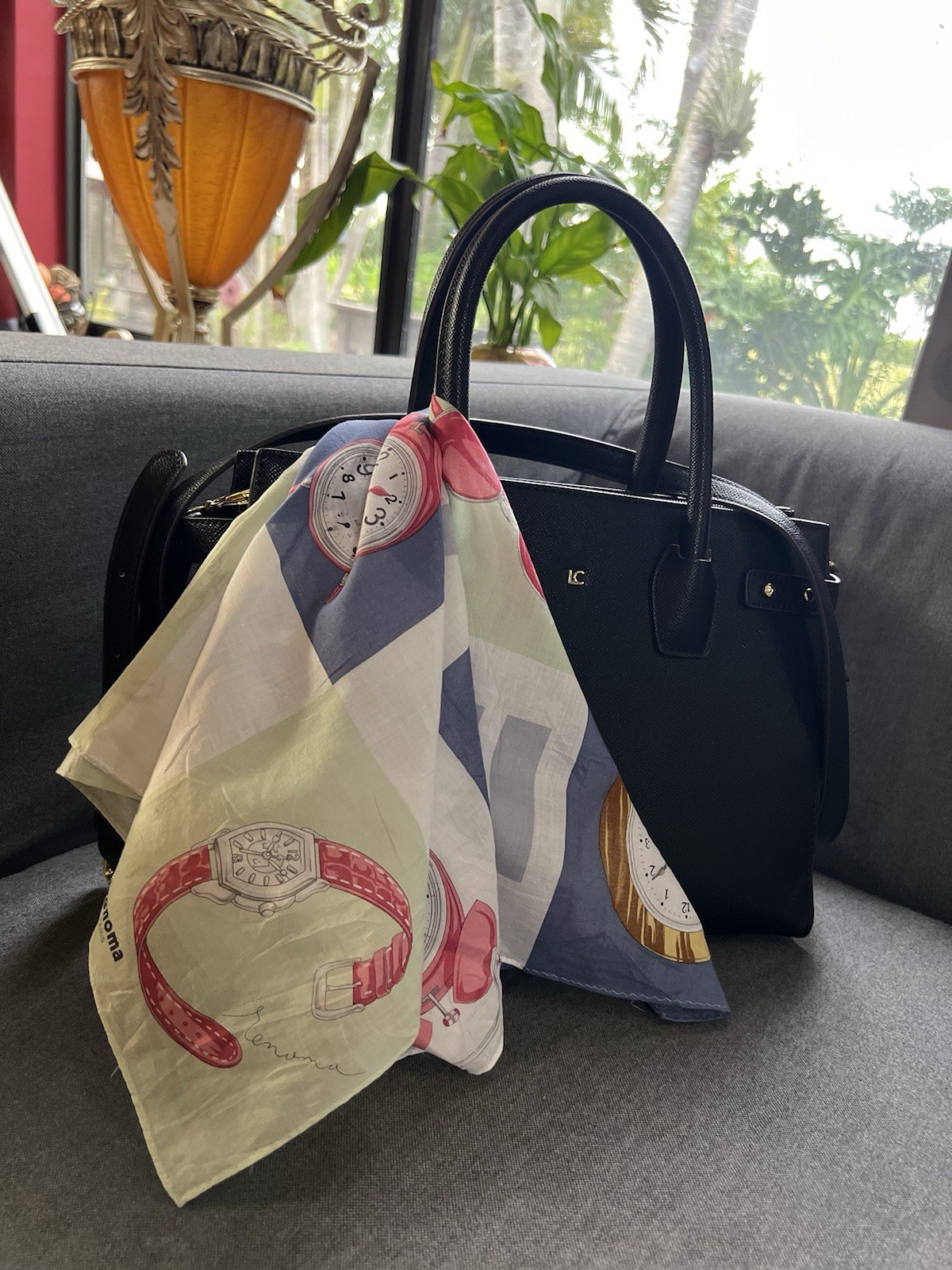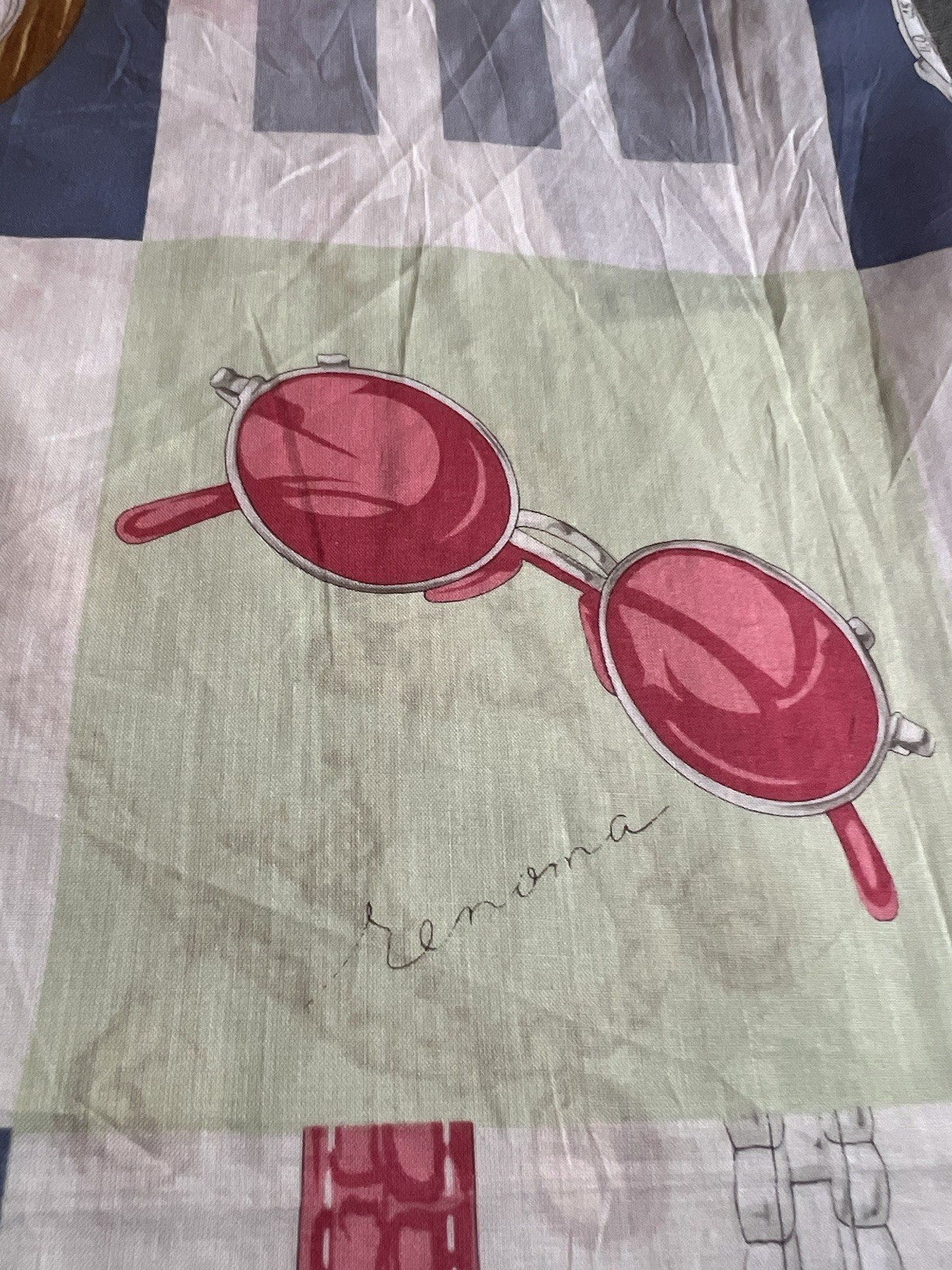 как выглядит Renoma Vintage Cotton Scarf Bandanna Watches Desk Clock Eye Glasses Print 21x21 фото