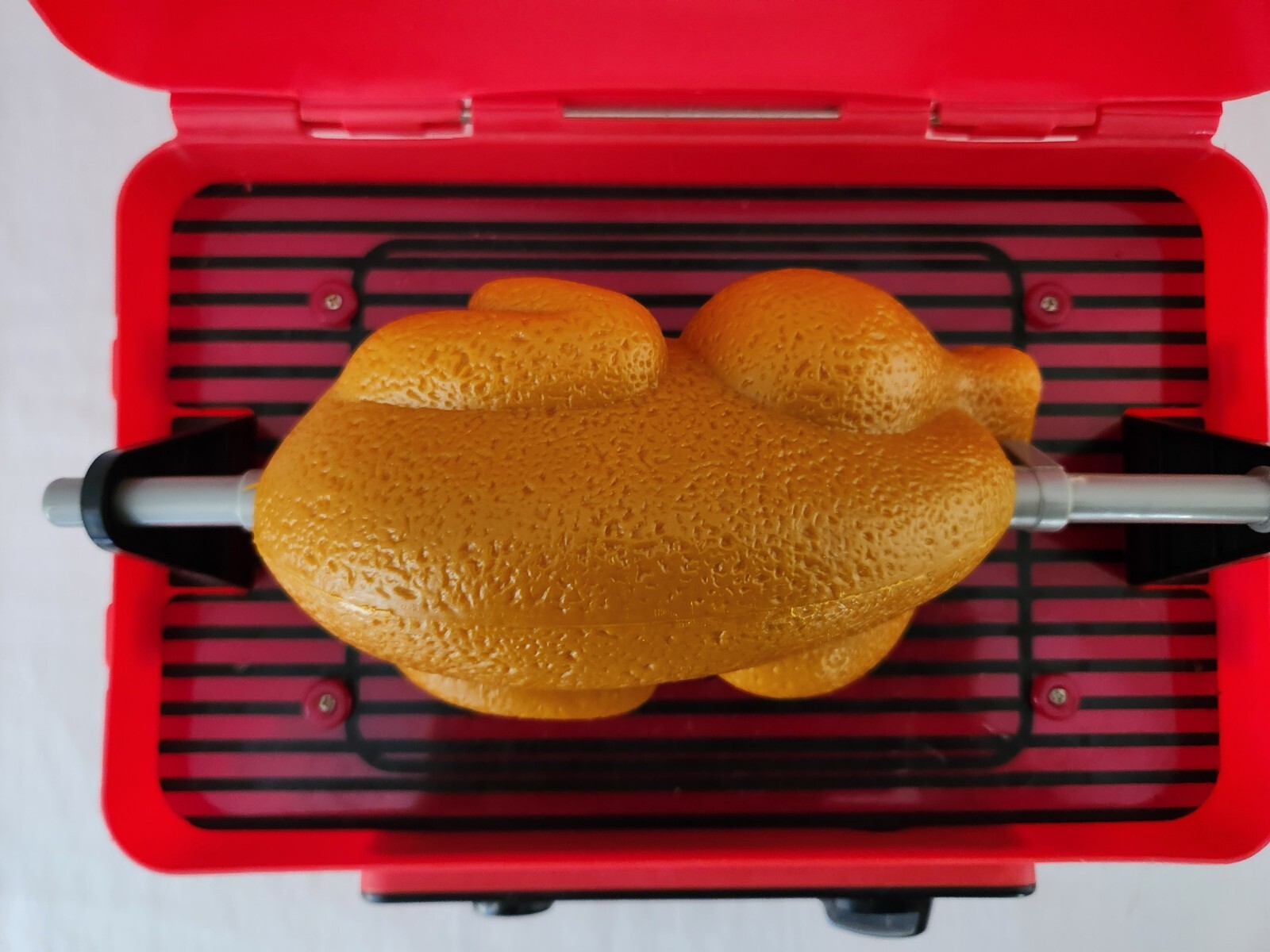 как выглядит Sizzlin Barbeque BBQ Pretend Play Red Toy Grill Chicken on Spit Light Sound фото