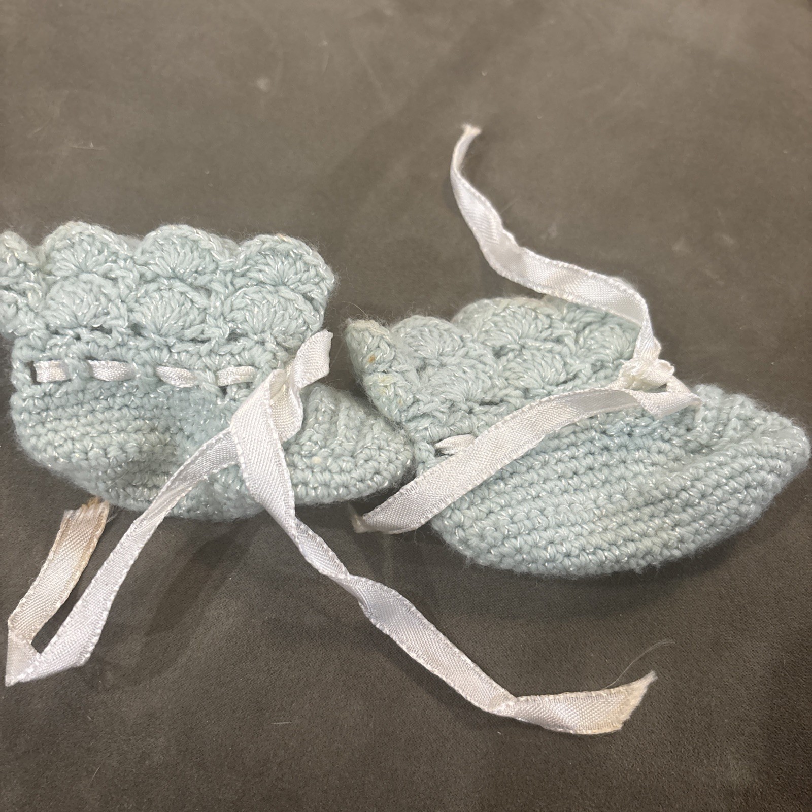 как выглядит Vintage Blue Knitted Baby Booties фото