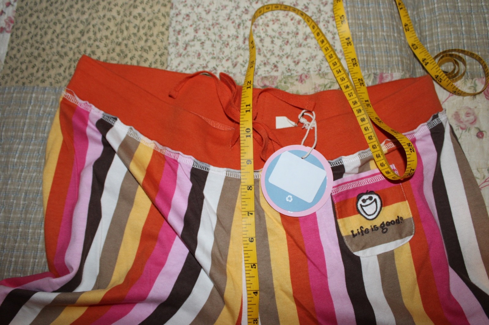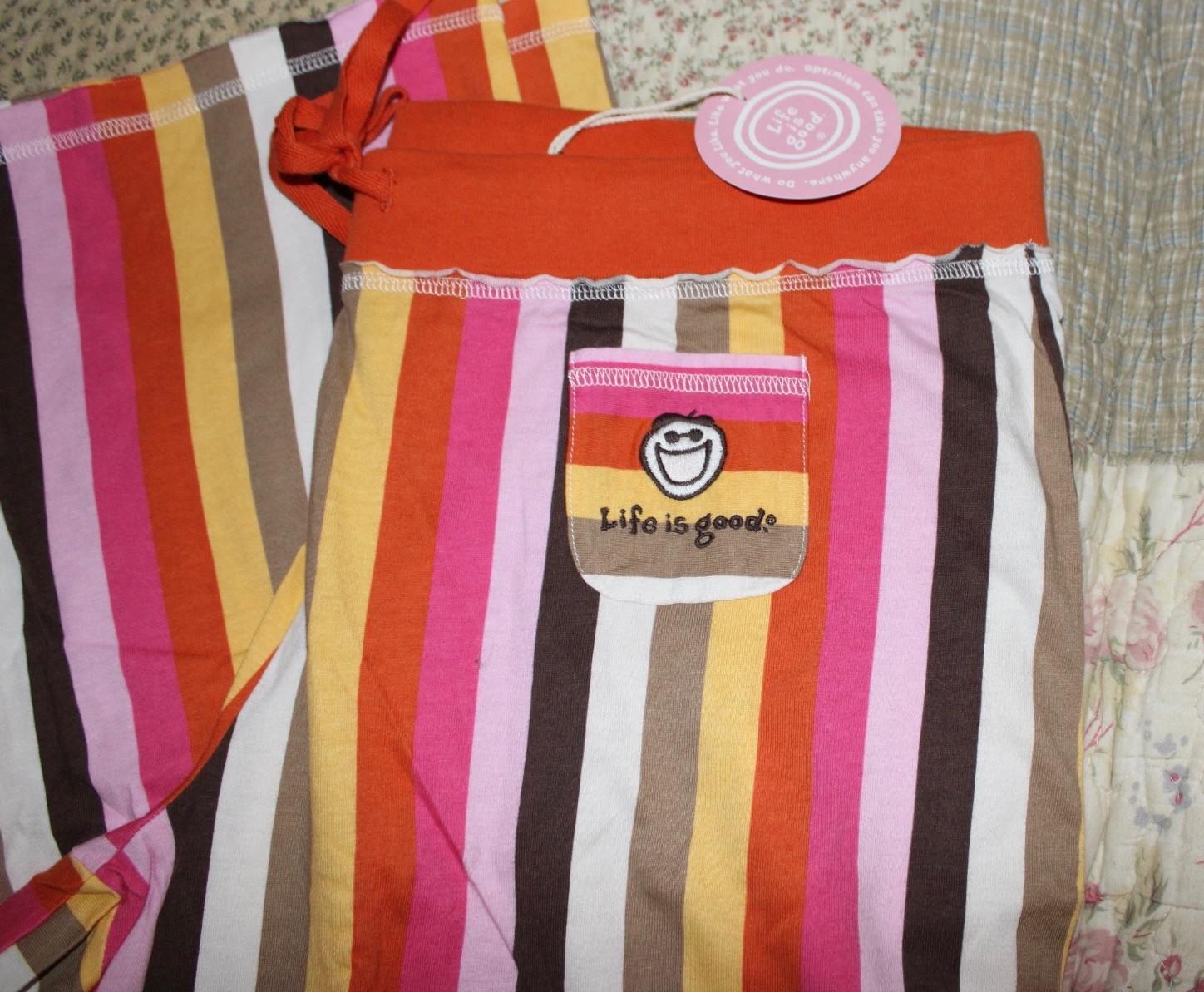 Large NWT Women's Life Is Good Jake Multicolor Stripe Sleep Pants Raw Edging