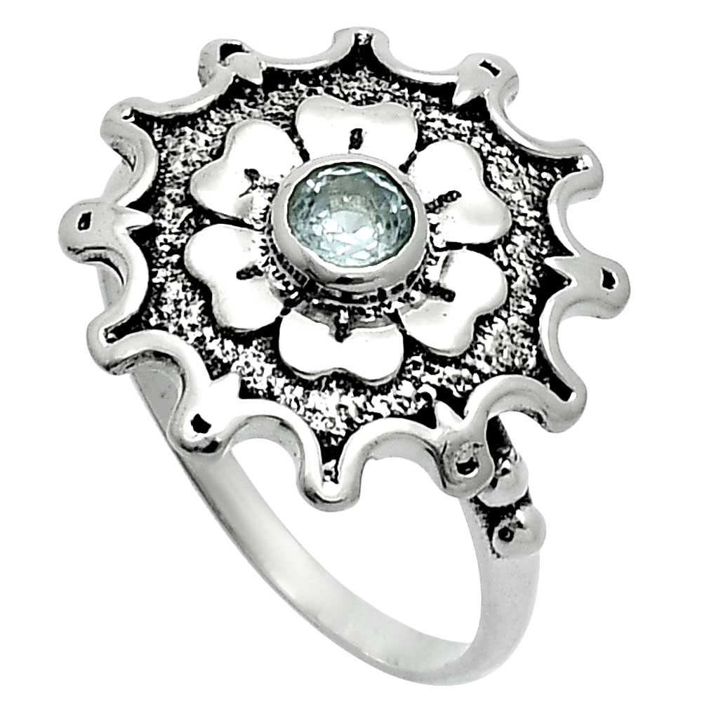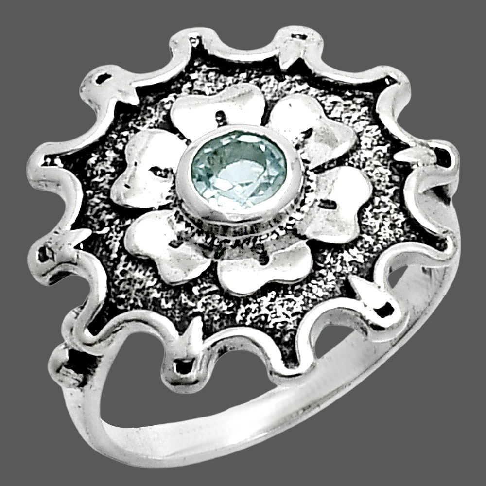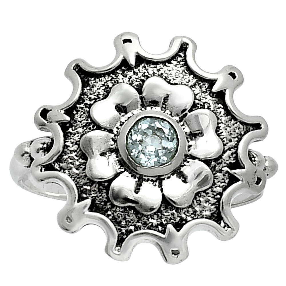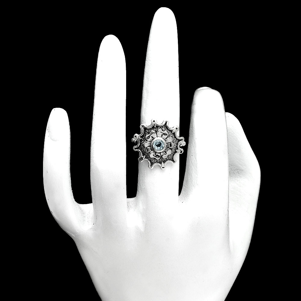 Vintage Floral Center Round Gemstone Ring 925 Sterling Silver Handmade AGR1031