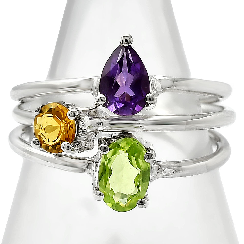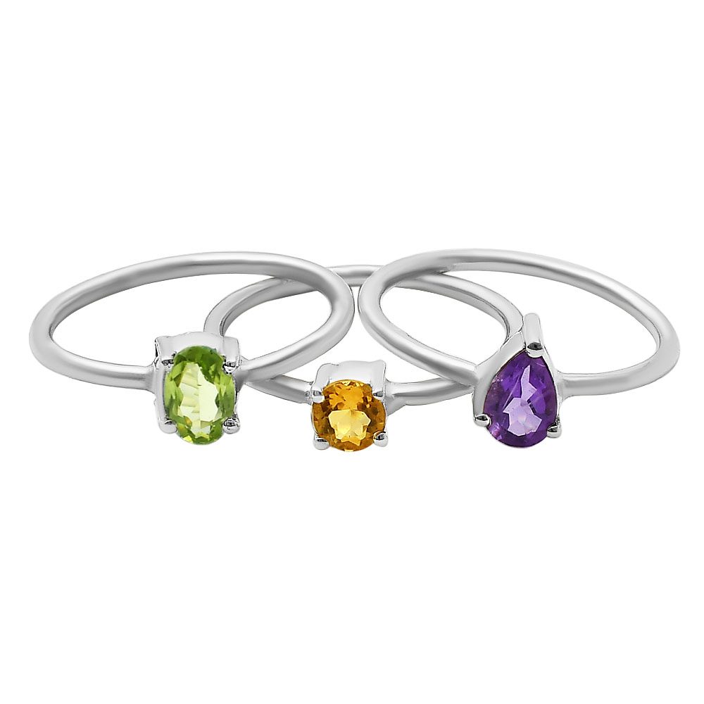 Three Colorful Stone Gemstone Stackable Ring 925 Sterling Silver Jewelry DGR1120