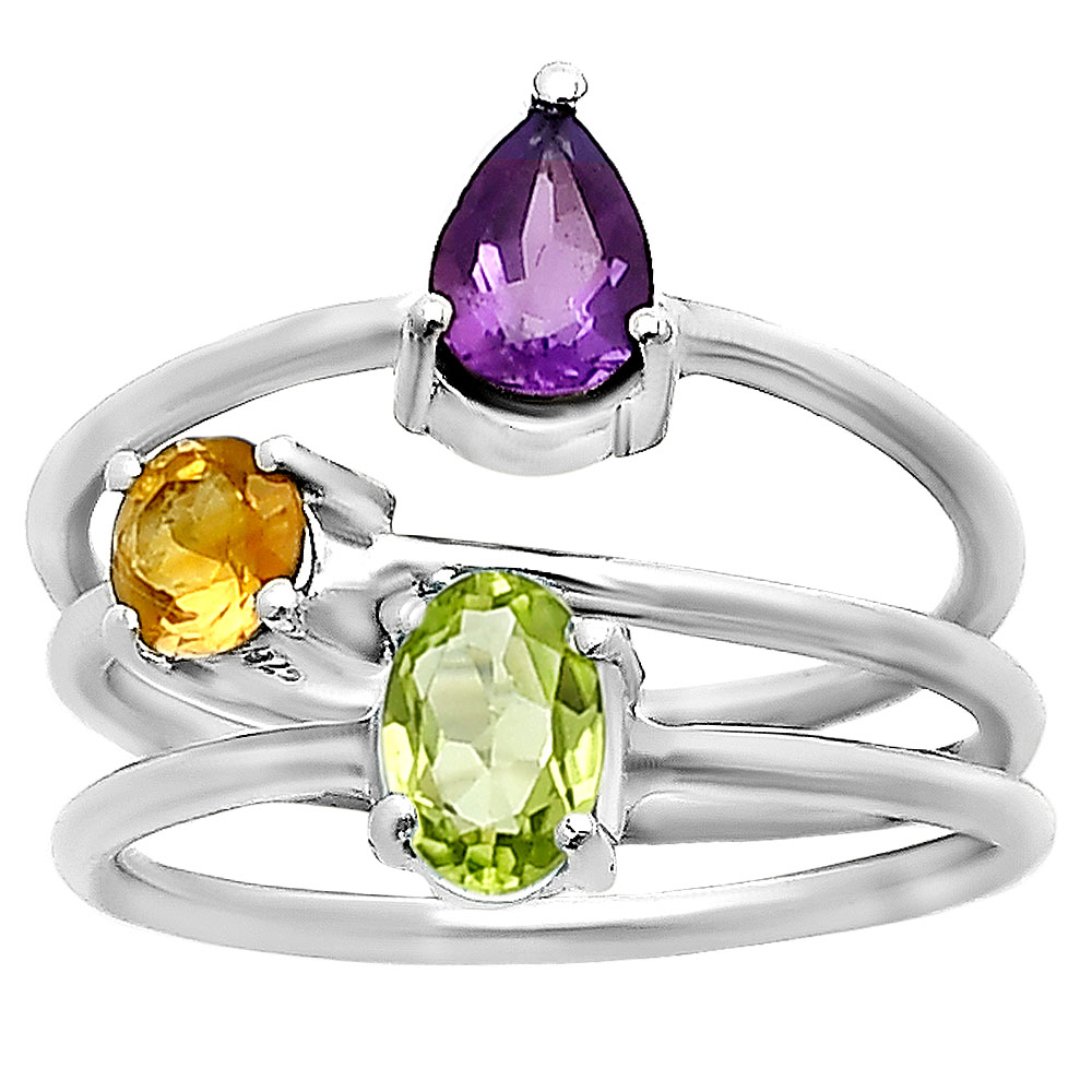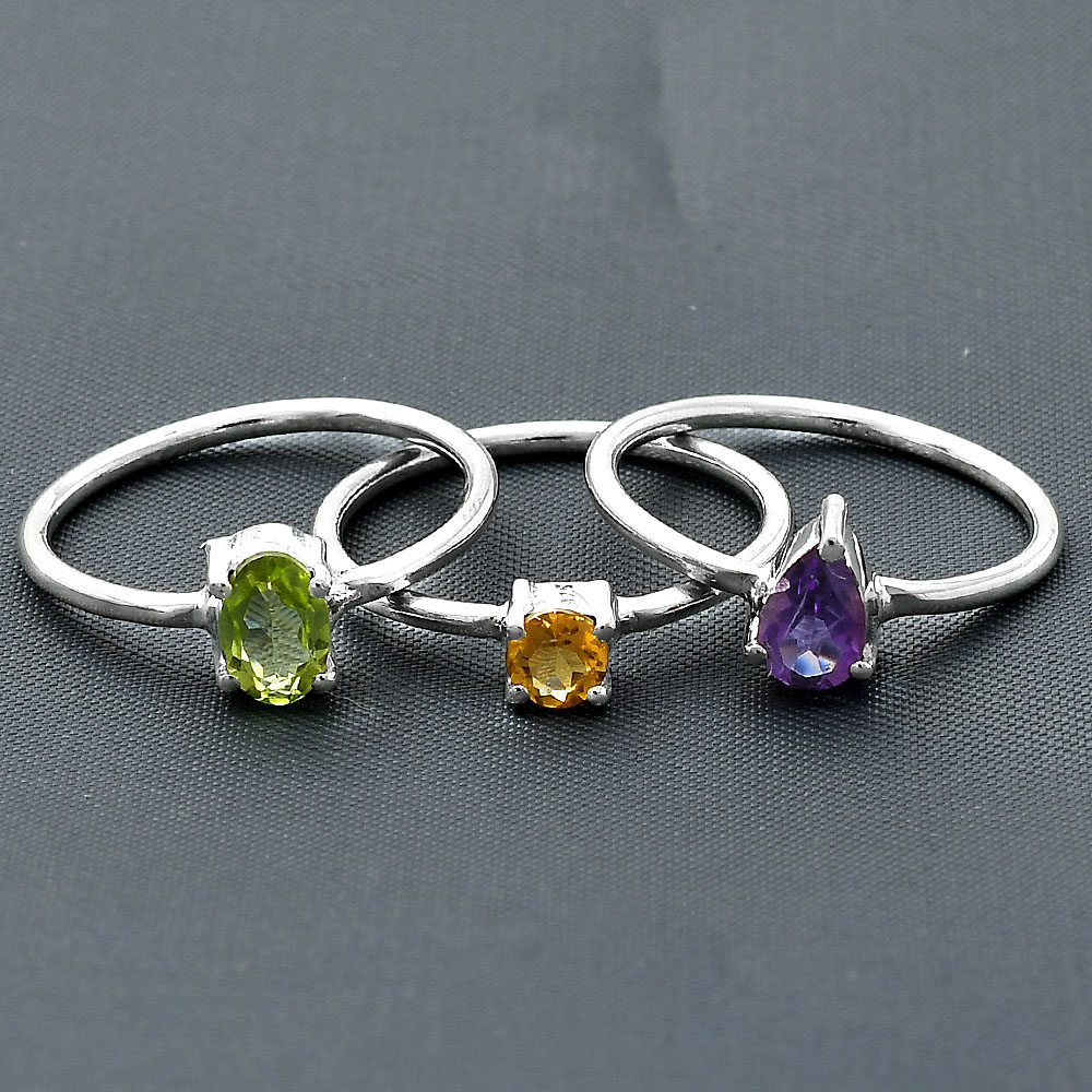 как выглядит Three Colorful Stone Gemstone Stackable Ring 925 Sterling Silver Jewelry DGR1120 фото
