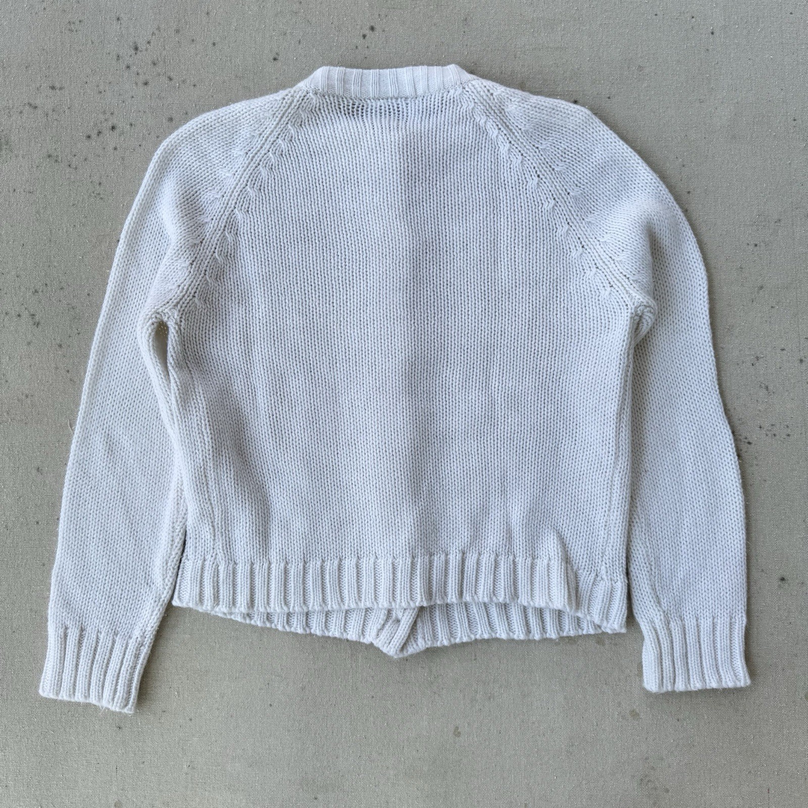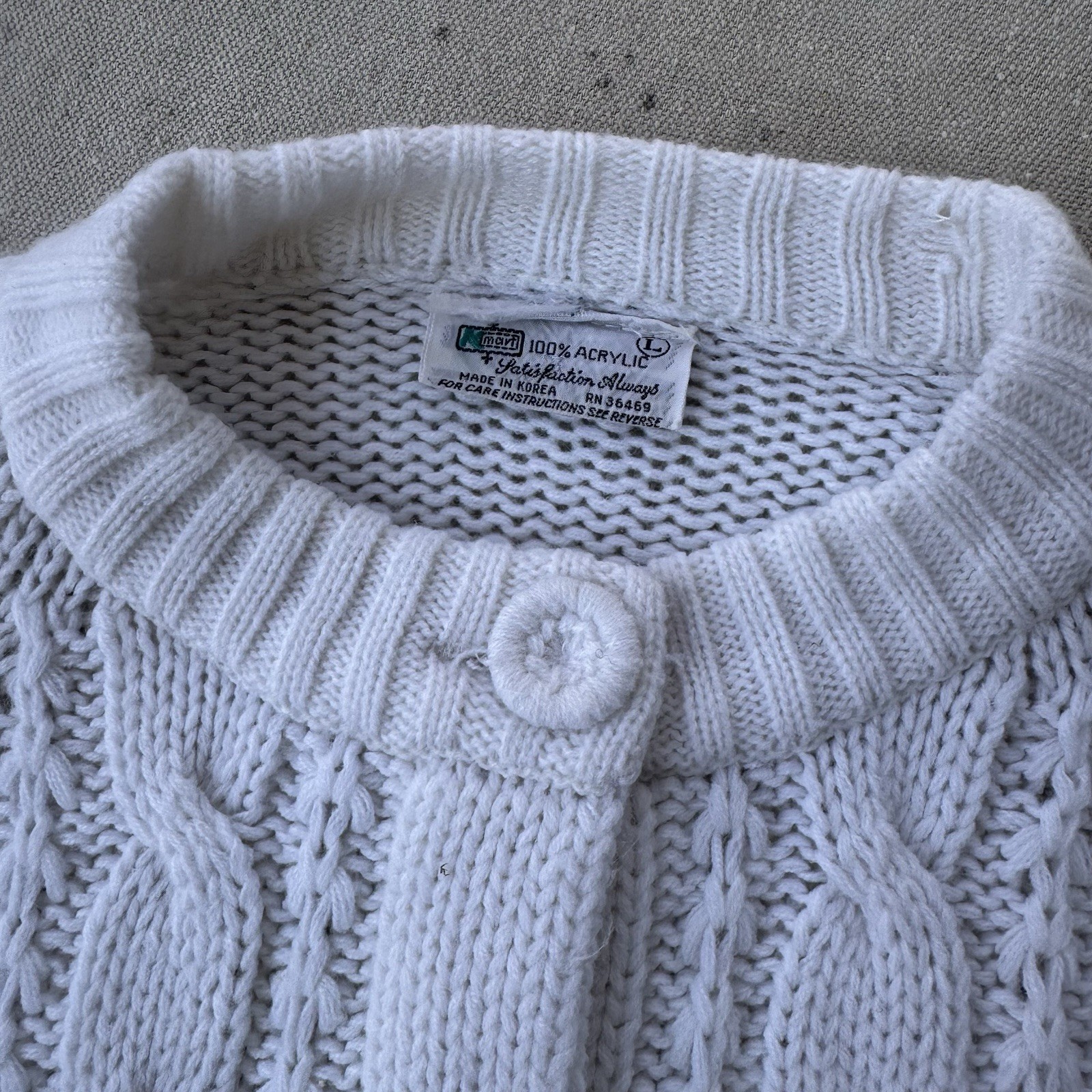 Vintage 70S White Cable Knit Cardigan Sweater Women s Size Med / Large Acrylic