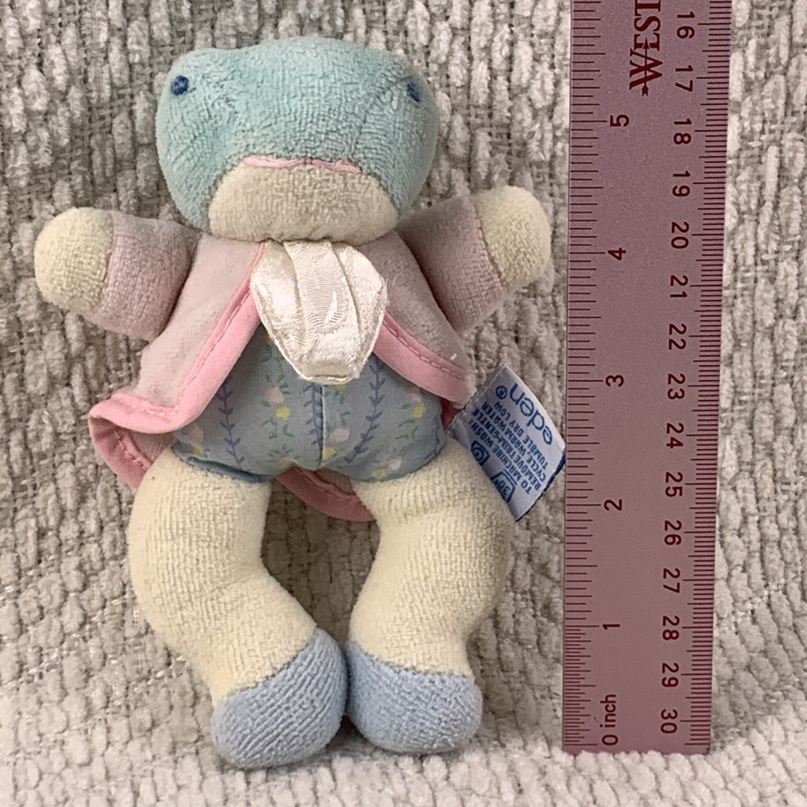 как выглядит Vintage Eden Toys Frog Plush Stuffed Animal Baby Lovey Pink Green Yellow Pastel фото
