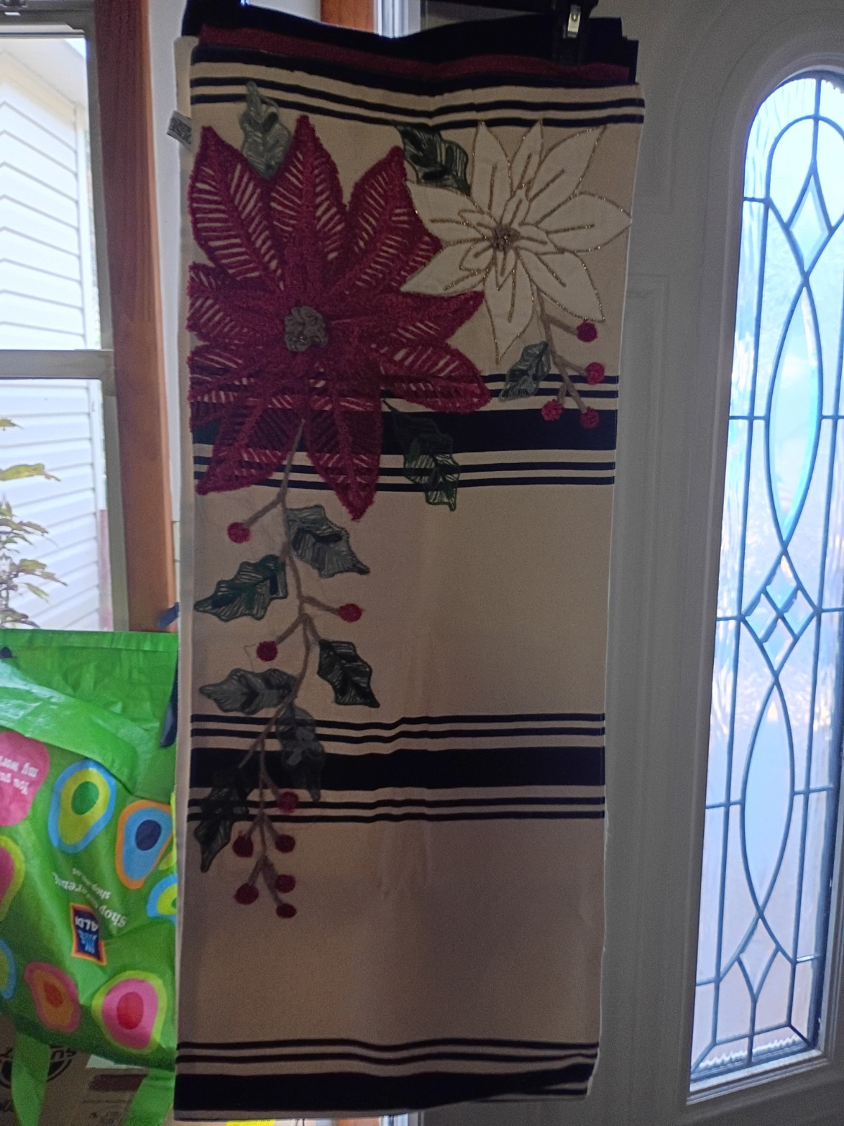 как выглядит Embroidery Poinsettia Christmas Holiday Table Runner New фото