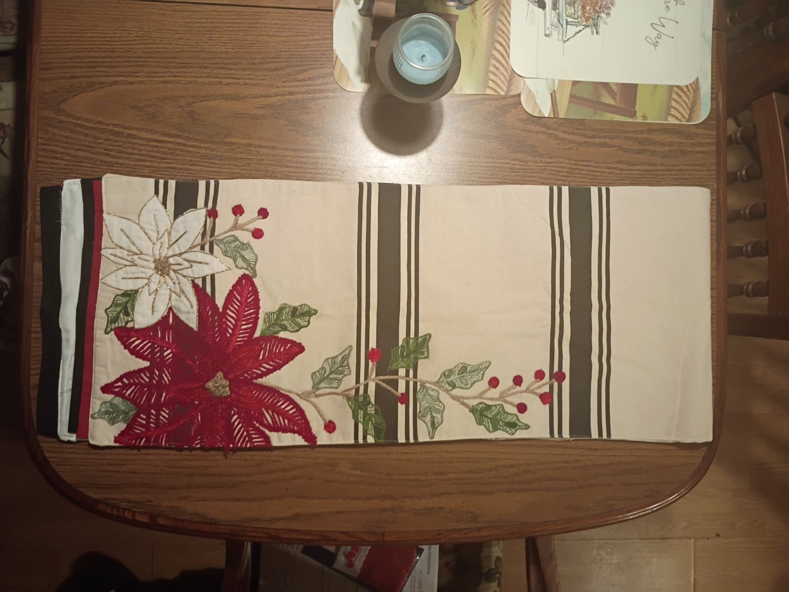 Embroidery Poinsettia Christmas Holiday Table Runner New