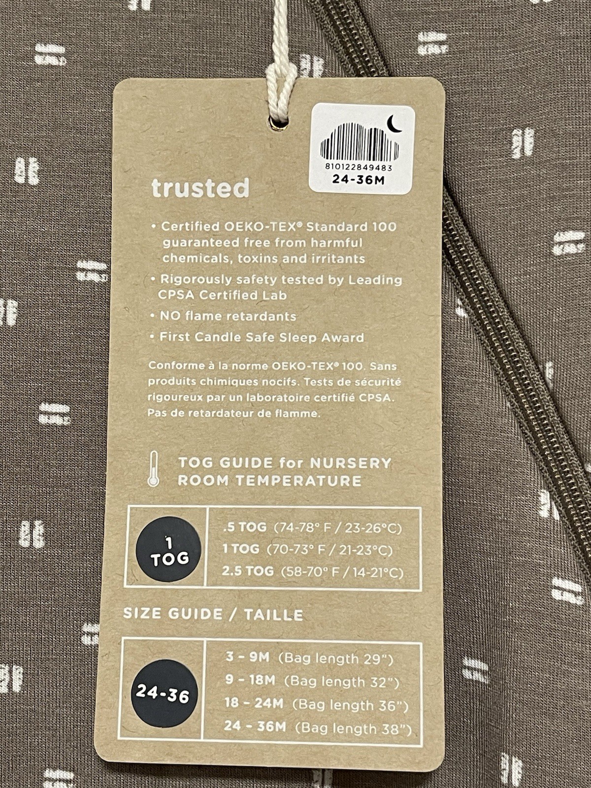 Gunamuna Unisex Baby Sleep Sack 1 TOG, Beige, Size 24-36M S more pattern