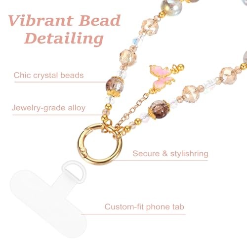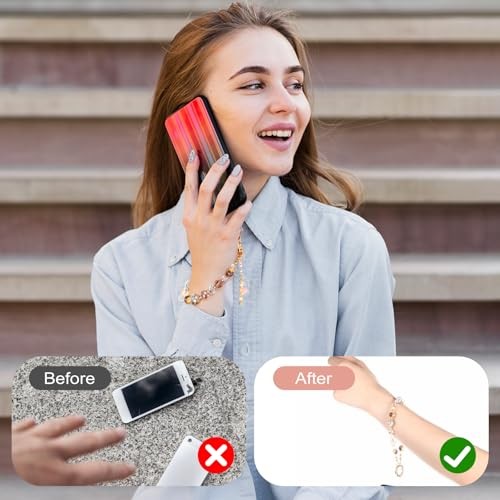 Beaded Charms Strap, Pink Crystal Bracelet Wrist With Anti-Theft Detachable