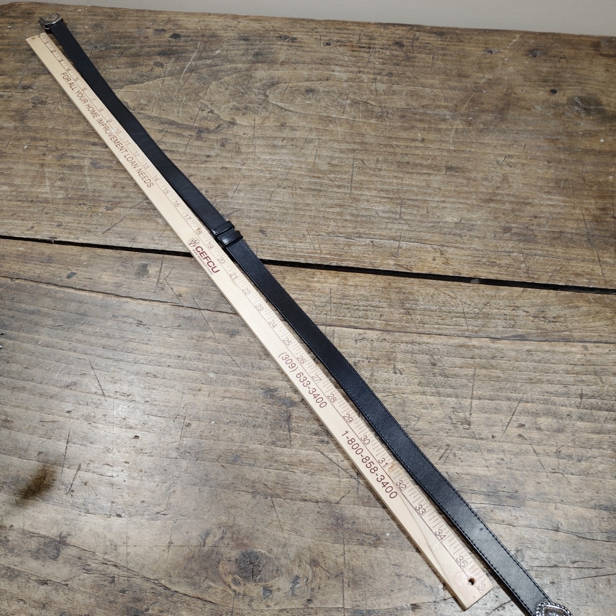 Chico's Silver Belt Sz S Buckle Black Leather Adjustable Slide Equestrian Chic