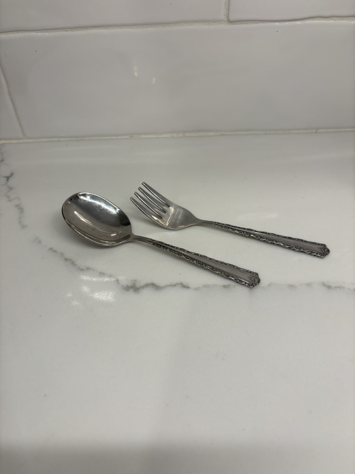 Oneida Deluxe CHERIE Stainless 2 Piece Baby Set Made In America Mini Spoon Fork