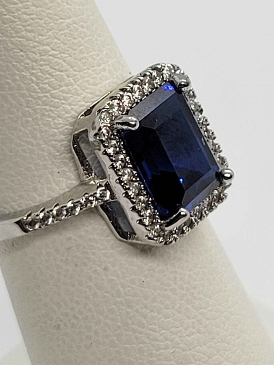 как выглядит Sterling silver Blue Spinel clear crystal halo cocktail ring sz 5 3/4 фото