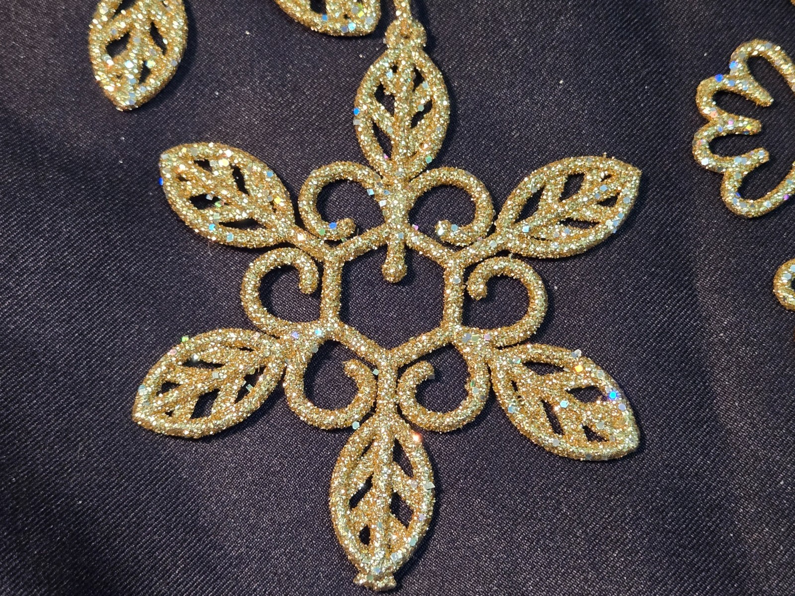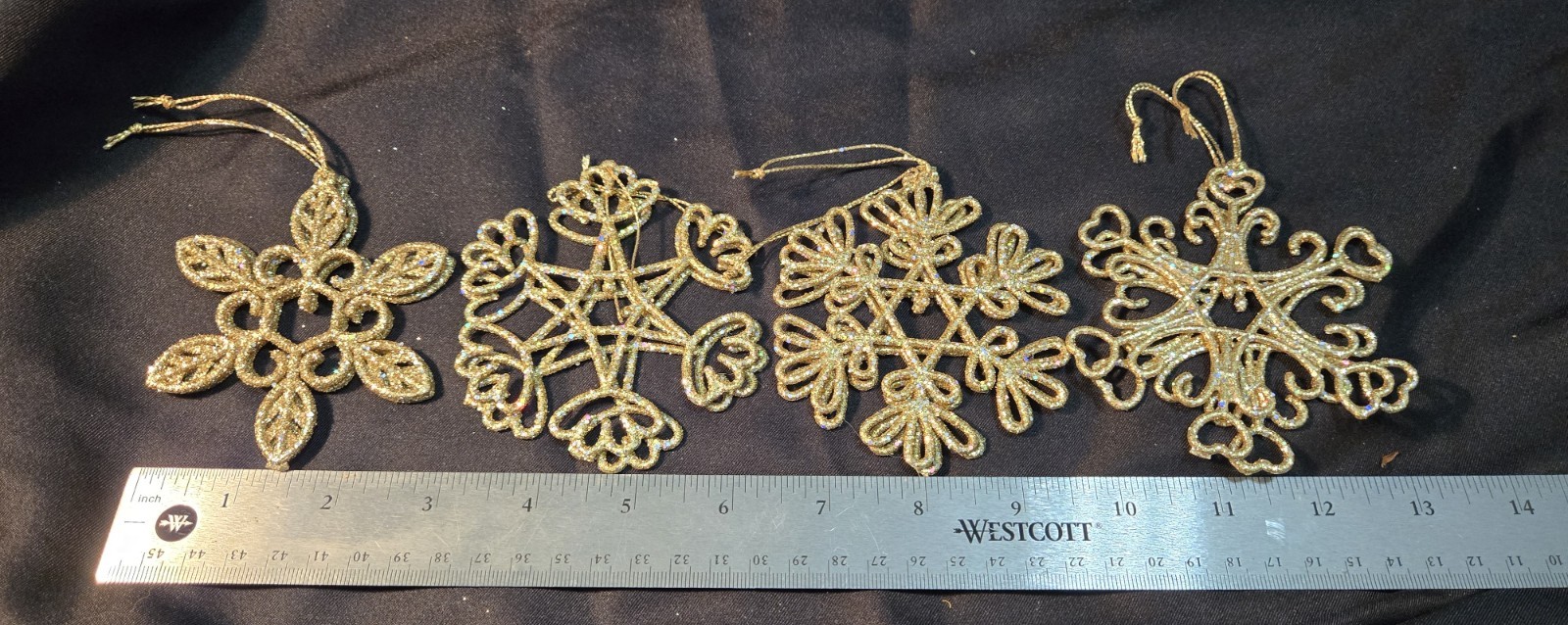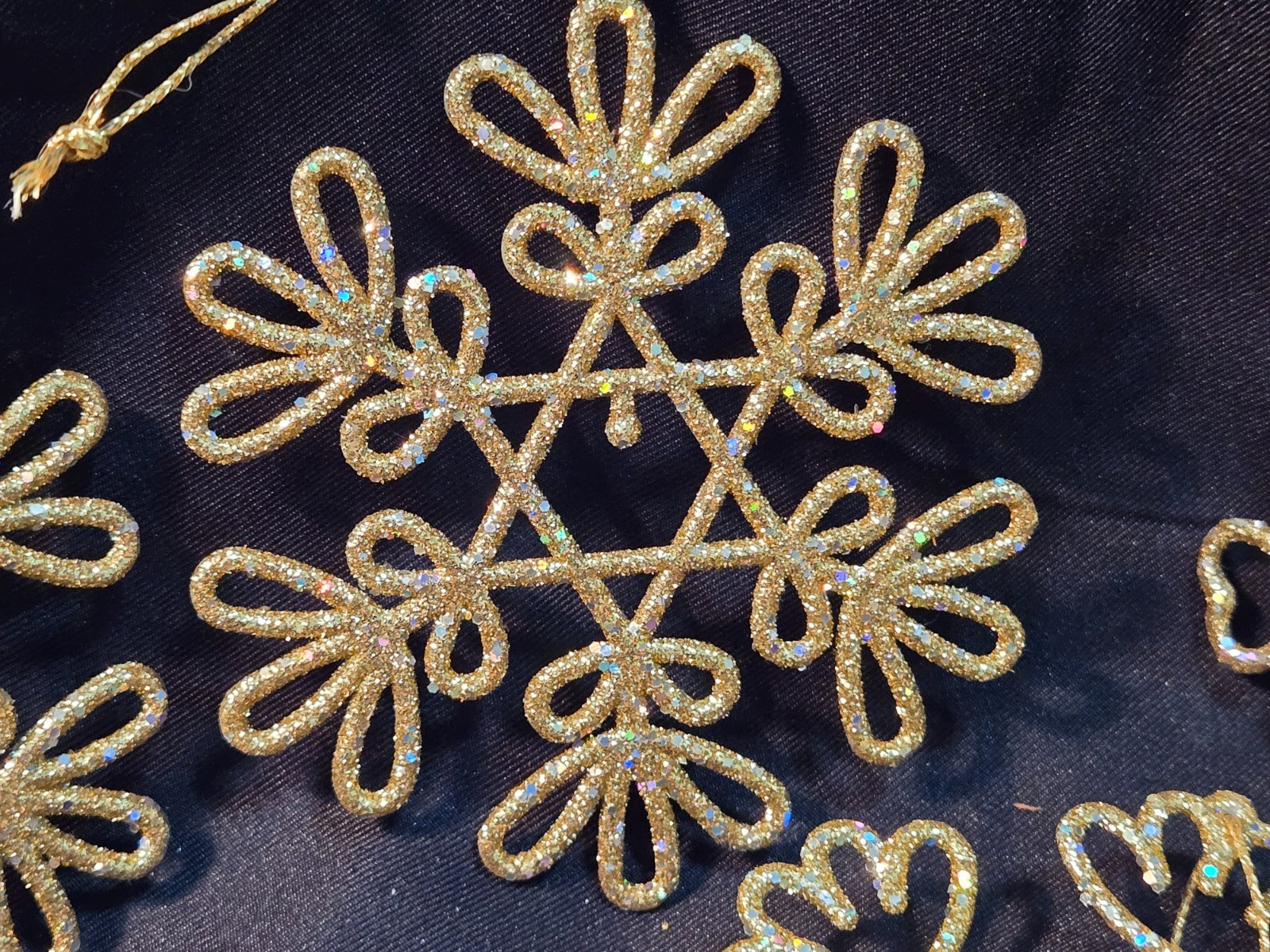 Set of 8 Gold Glitter Snowflake Ornaments 4 Different Shapes 2 of Each Shape 3