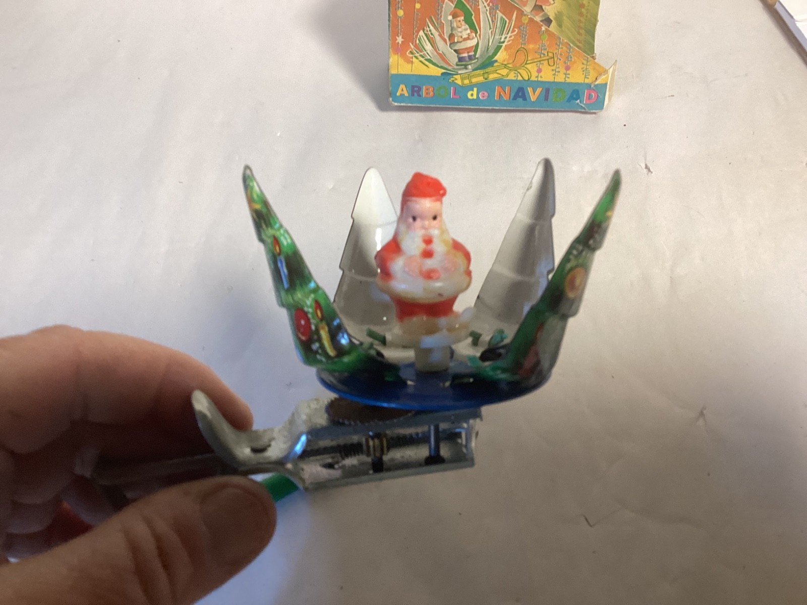 как выглядит Vintage tin litho Santa Spinner 9725 Christmas toy made in Spain фото