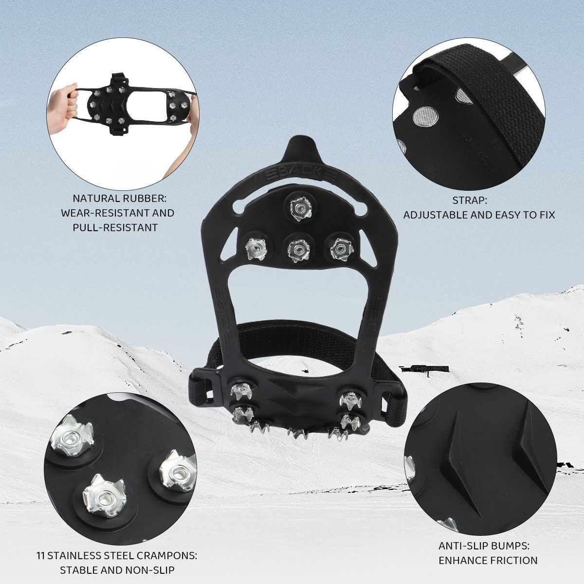 Ice Crampons Snow Grips Anti Slip Over Shoe Boot Studs Cleats Spikes Grippers