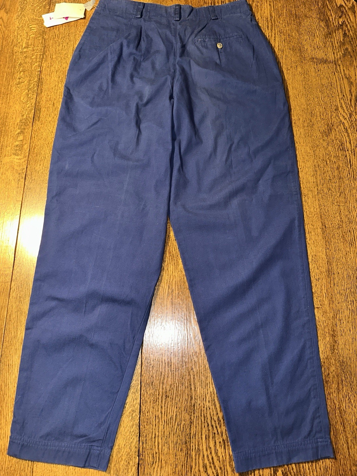 как выглядит Vtg 80s 90s LizSport Blue Pleated Pants Chino Tapered Leg 14 Deadstock Preppy фото