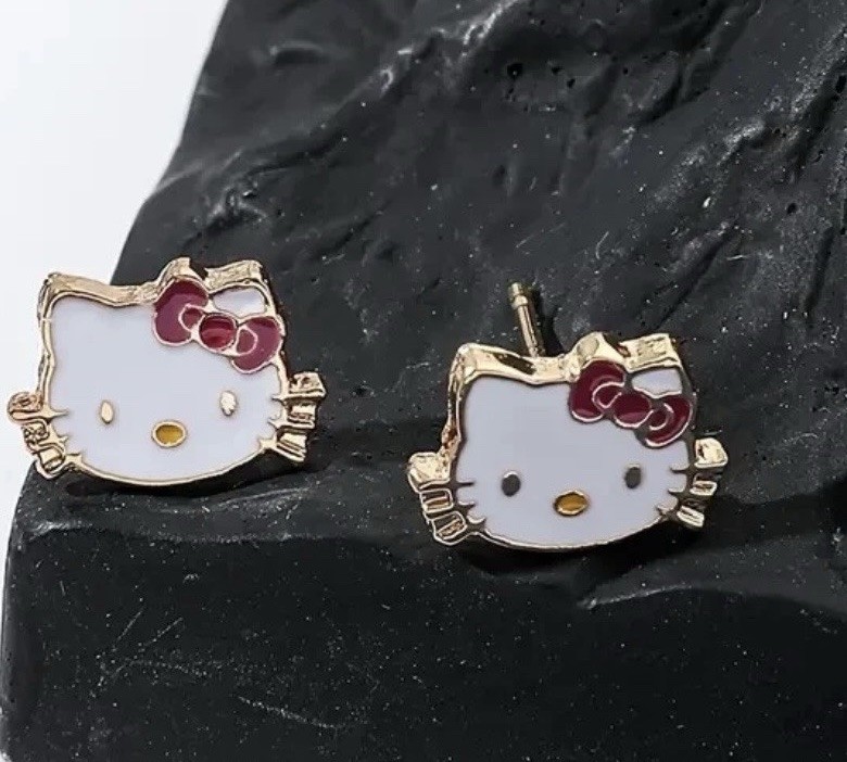 как выглядит Hello Kitty Cat Bow Stud Earrings NWOT фото