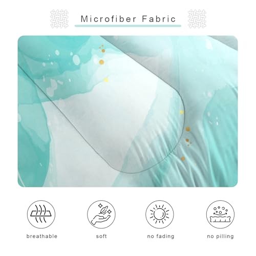 Teal Comforter Set: Blue Green Marble Bedding Sets for Women Queen Teal Marble