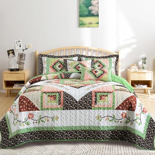 Cotton Quilts Queen Size, Floral Bedspreads QUEEN 90 98 in G Floral Green