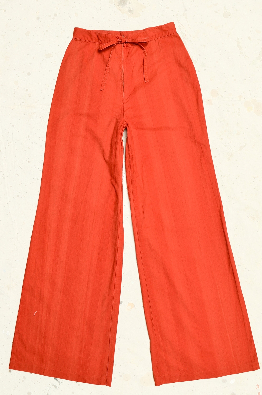 1970s Rust Orange Bell Bottoms High Waist Cotton Flared Trousers 26 x 32