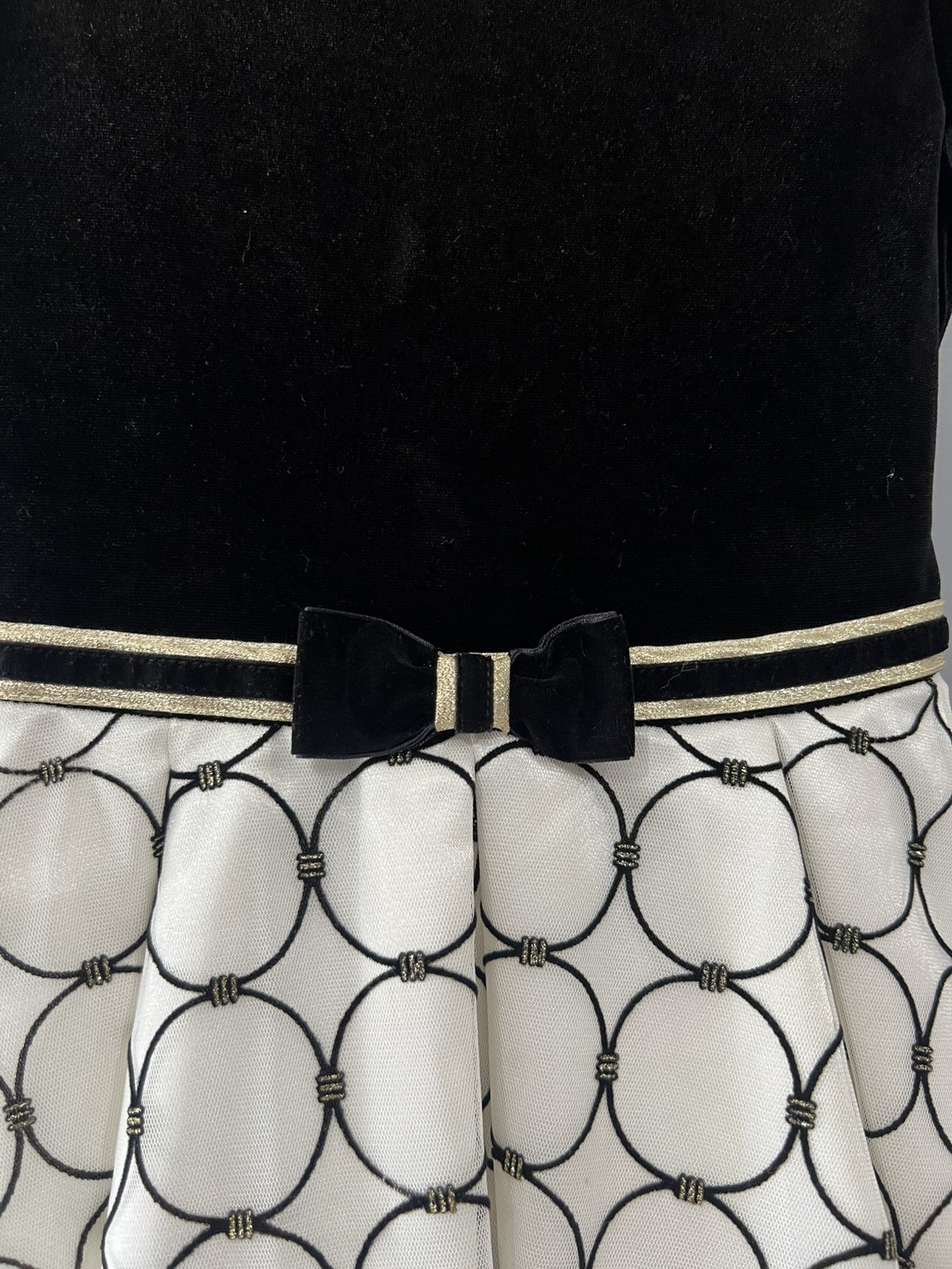 как выглядит Girls Jona Michelle Party Dress, Blk Velveteen Top, Wht/Blk Tulle Skirt, Sz 12 фото