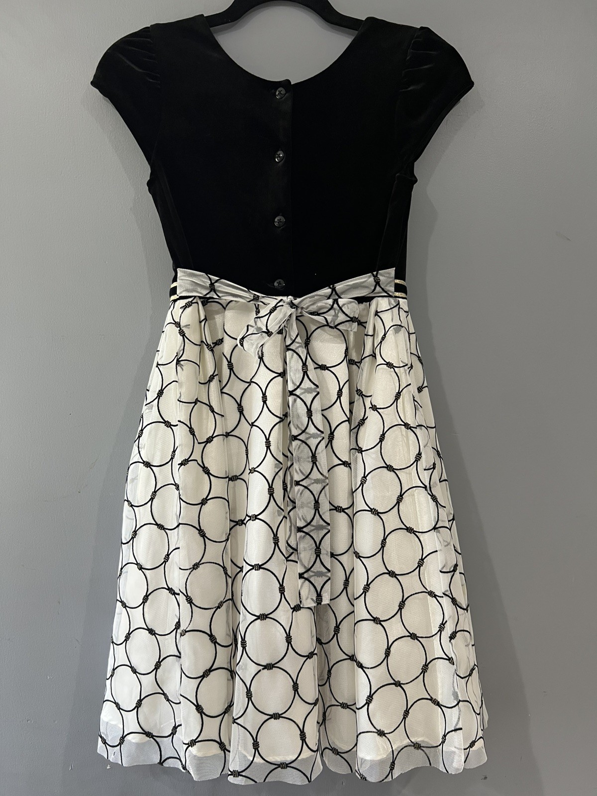 Girl's Jona Michelle Party Dress, Blk Velveteen Top, Wht/Blk Tulle Skirt, Sz 12