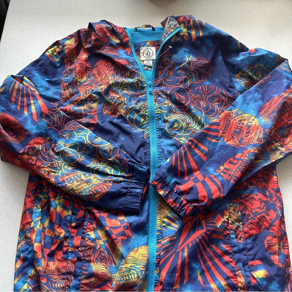 как выглядит Volcom youth size large jacket Blue and Red windbreaker skateboard/grunge E- 10 фото