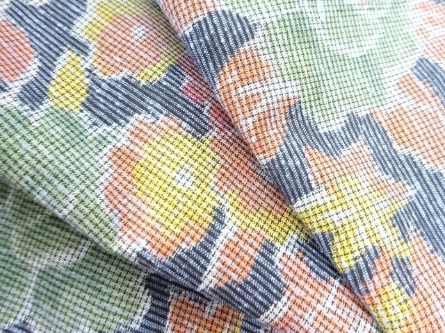 • 7567734: JAPANESE KIMONO / SILK / HAND WOVEN TSUMUGI / PEONY FLOWERS
