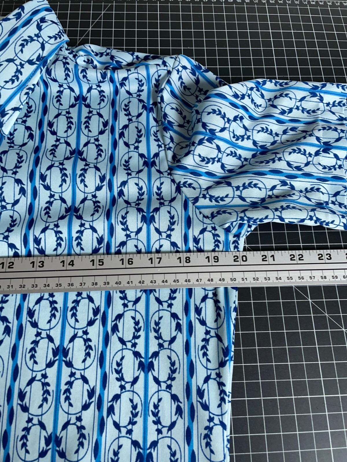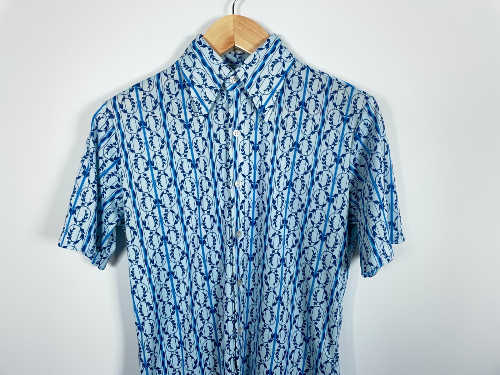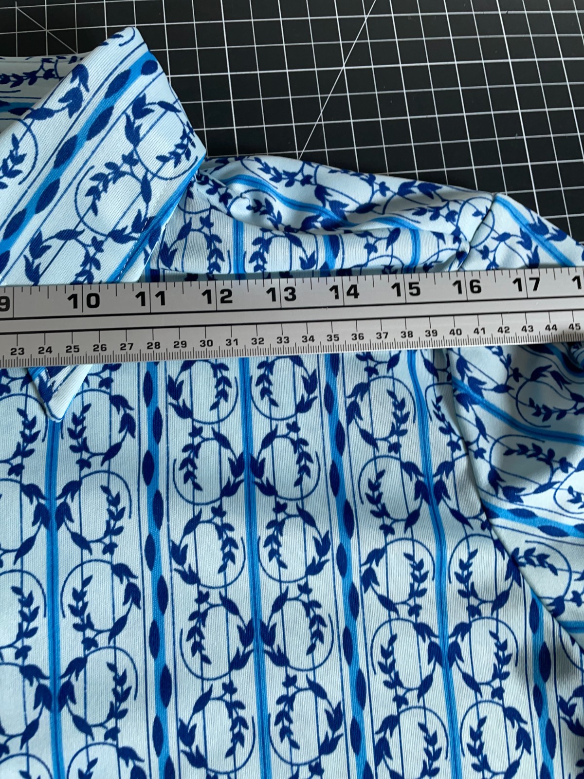 как выглядит 70s Geometric Pattern Shirt Mens 15.5 / Medium Blue Stretchy Polyester Disco фото