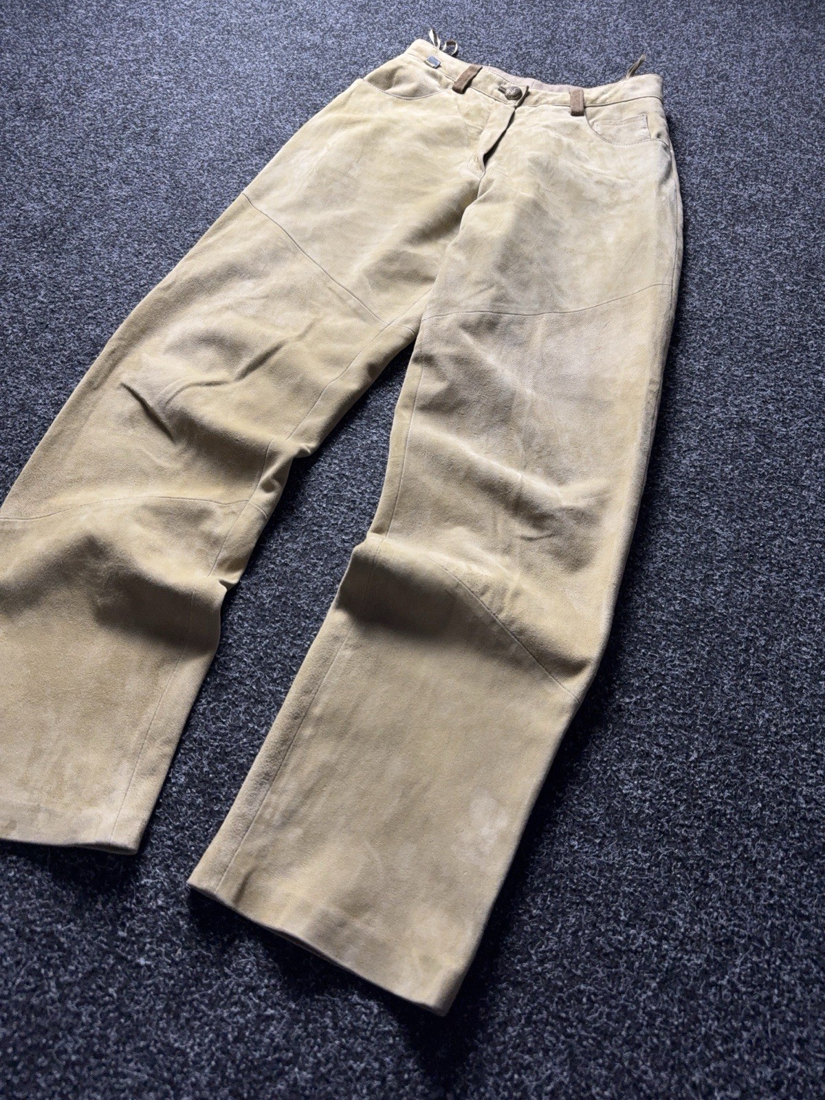 как выглядит Vintage 90s Western Retro USA Soln Beige Suede Leather Pants Wmns W28 L31 / EU38 фото